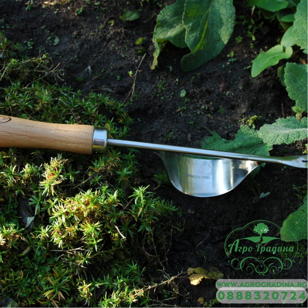 Онлайн магазин agrogradina.bg представя изкоренител от неръждаема стомана – предназначено за премахване на корени или цялостната част на растения от почвата, например за унищожаване на плевели.