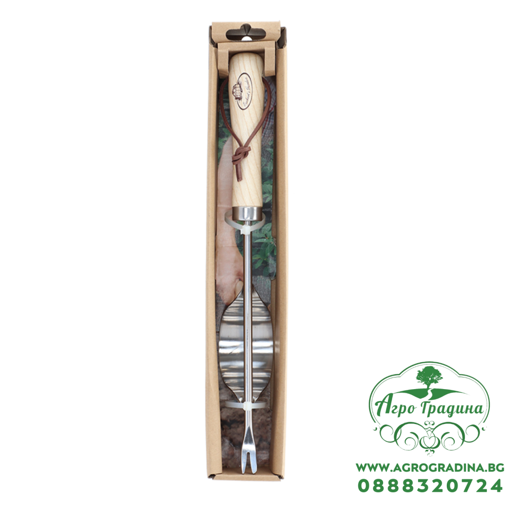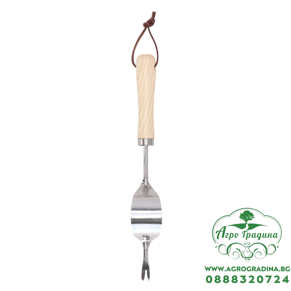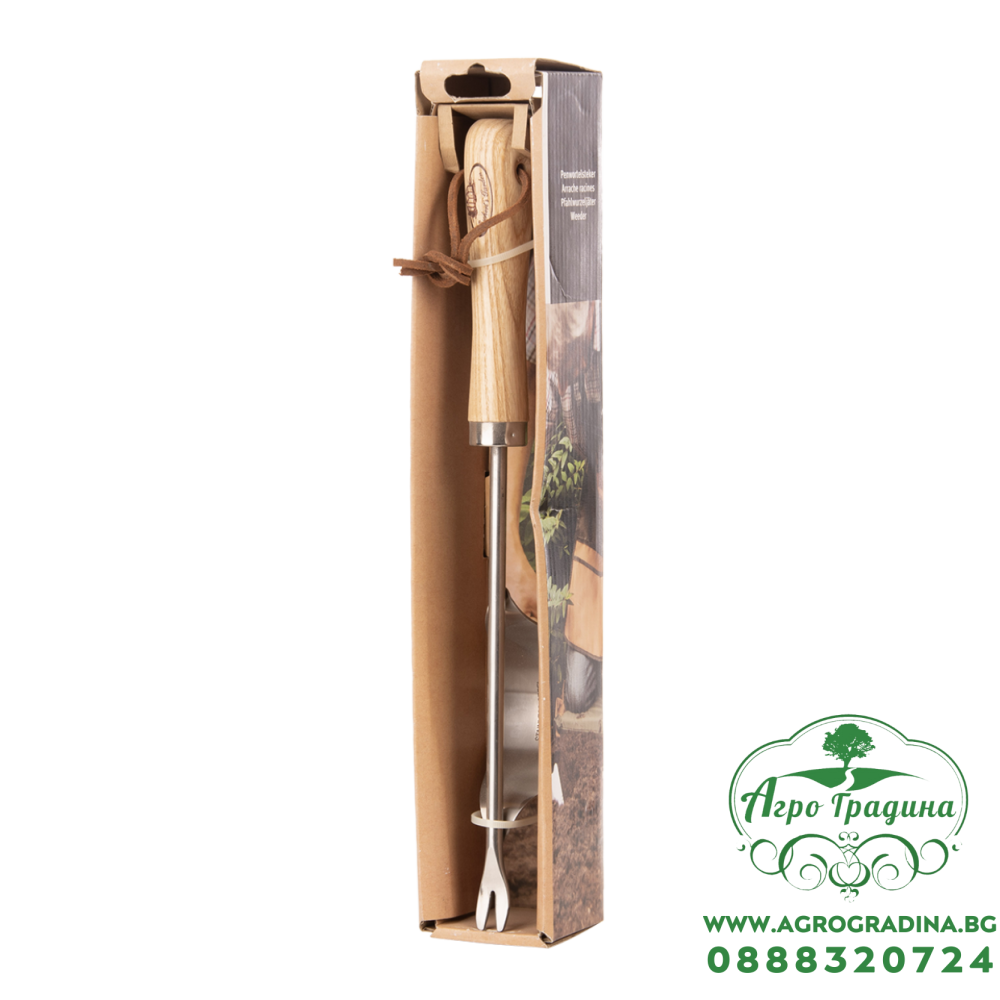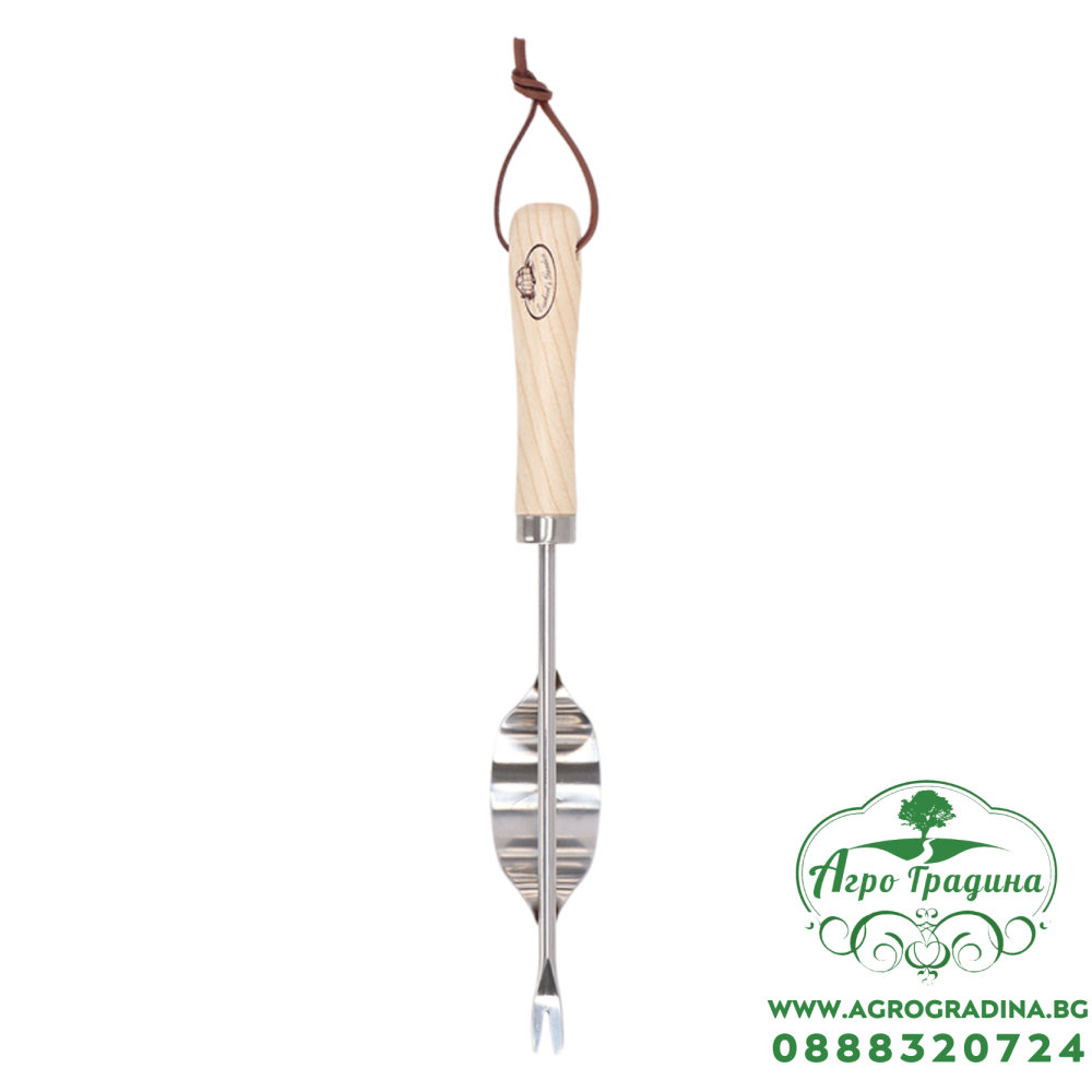 Изработено от висококачествена неръждаема стомана, която осигурява издръжливост и дълъг живот на инструментите, и дръжка от ясен. Инструментът разполага с остра и устойчива стоманена глава, която лесно се впива в почвата и мигновено изважда плевелите. Удобната дръжка осигурява стабилен захват, като просто забодете острието в земята до корена на плевела и след това издърпайте, за да ги отстраните. Инструментът е снабден с кожена връзка за окачване, осигуряваща лесно съхранение.
