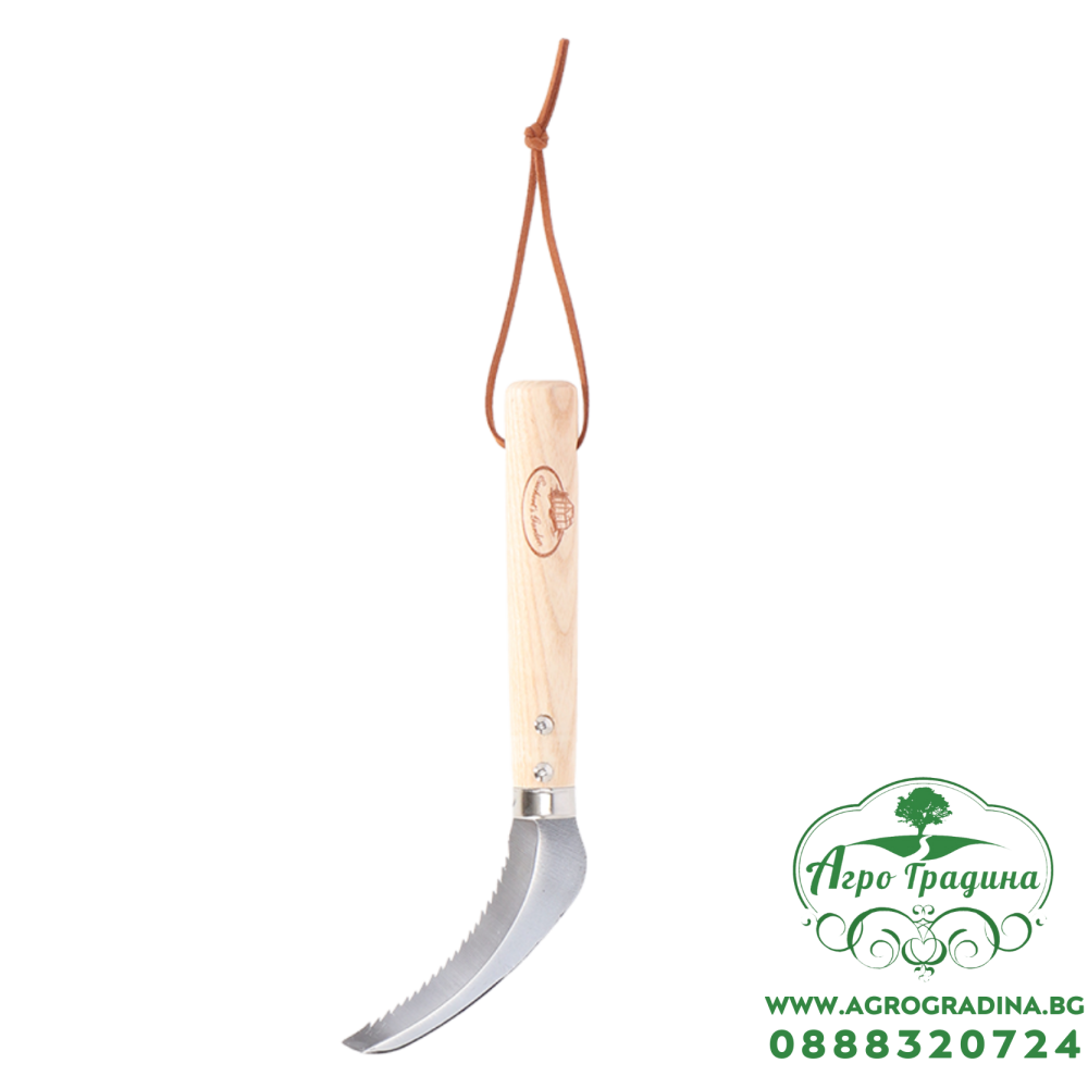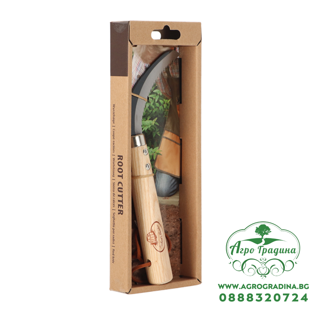 Инструмент за рязане на корени от всякакъв вид. Изработен от висококачествена въглеродна стомана с назъбено острие, което гарантира гладък и прецизен разрез. Дръжката на резачката е направена от ясен, предоставяйки удобство и контрол. Инструментът е лесен за използване - просто поставете острието срещу корените и издърпайте нагоре. Този метод ще ви позволи да захванете корените и да ги отрежете с минимално усилие. Инструментът е снабден с кожена връзка за окачване, осигуряваща лесно съхранение.