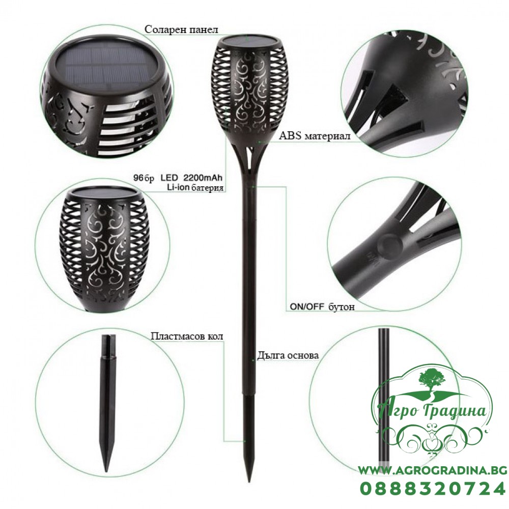 Соларнa LED лампa за градина (комплект 10бр) / топла бяла светлина