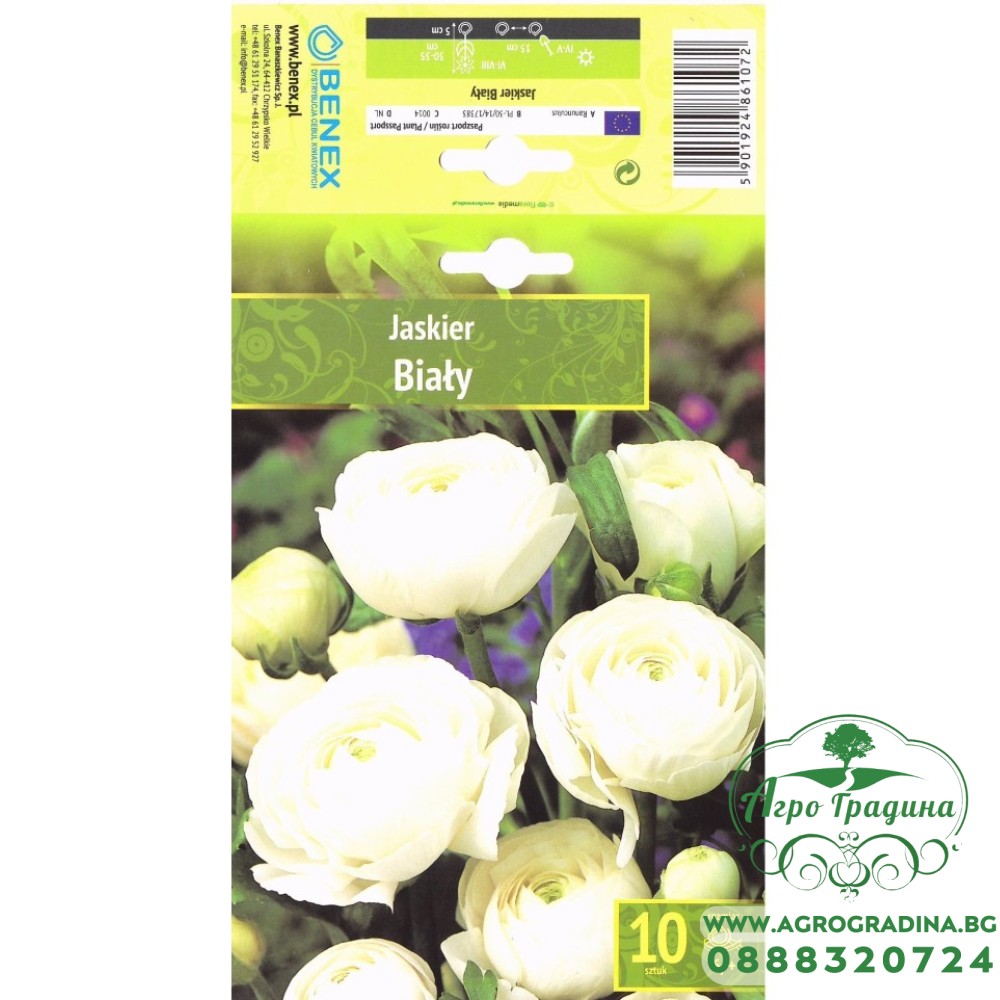 Лютиче Бяло Ranunculus - 10 бр луковици Онлайн магазин agrogradina.bg представя Лютиче бяло / Ranunculus. Лютиче (Ranunculus) е многогодишно декоративно растение с оригинални, кичести цветове в нежнорозов цвят, к... Прочети повече...