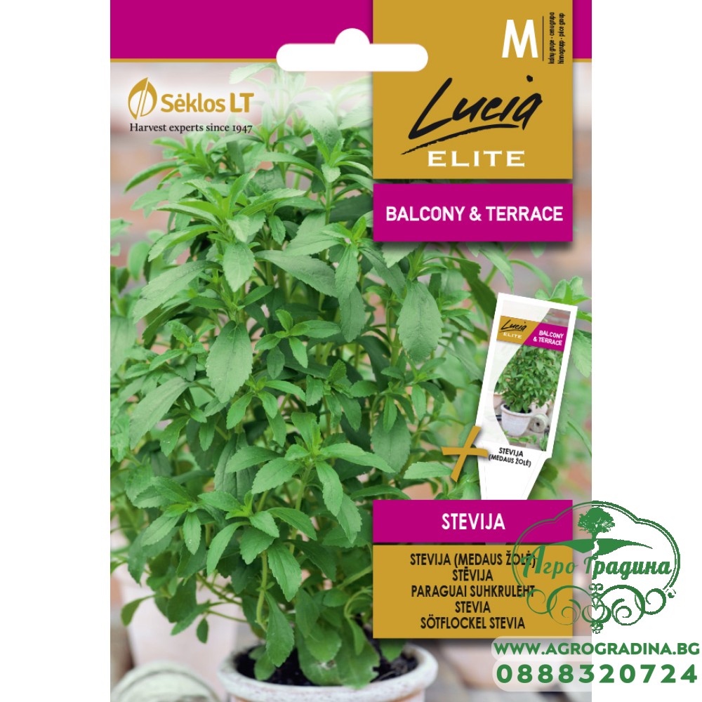 Стевията ( МЕДЕНА БИЛКА ) е многогодишно разстение,10-16 пъти по-сладко от захарта. Височината му е около 60-80 см. Листата на растението могат да се добавят към чай, кафе, компот, печива – всичко, което се подслажда. Растението е почти безкалорично и е безопасно за диабетици. Отглежда се в стаи, през лятото - на балкони отвън, растението не презимува. При отглеждане на стевия на перваза на прозореца в края на есента и зимата е необходимо да се инсталира допълнително осветление, за да се създадат благоприятни условия за растеж. Семената са малки, покълват трудно и дълго време. Много е важно да се създадат оптимални условия за покълване. За да покълнат семената е важно посевът да не се преполива и да не се изсушава. Семената са малки, засети в земята не се покриват. От 10 семена ще можете да отгледате 4-5 растения, тоест 10 семена ще са достатъчни за засаждане на 4-5 саксии с по 1 растение. При отглеждане се препоръчва пестеливо използване на азотни торове, които "намаляват" сладостта на листата.