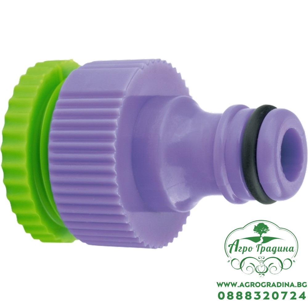 Адаптер за кран, вътрешна резба 1/2"-3/4", пластмасовАдаптерът е направен от удароустойчива ABS-пластмаса. Комплектован е с преходник, позволяващ свързването на поливната система с крана с диаметри 1 2” и 3 4”, от другат...