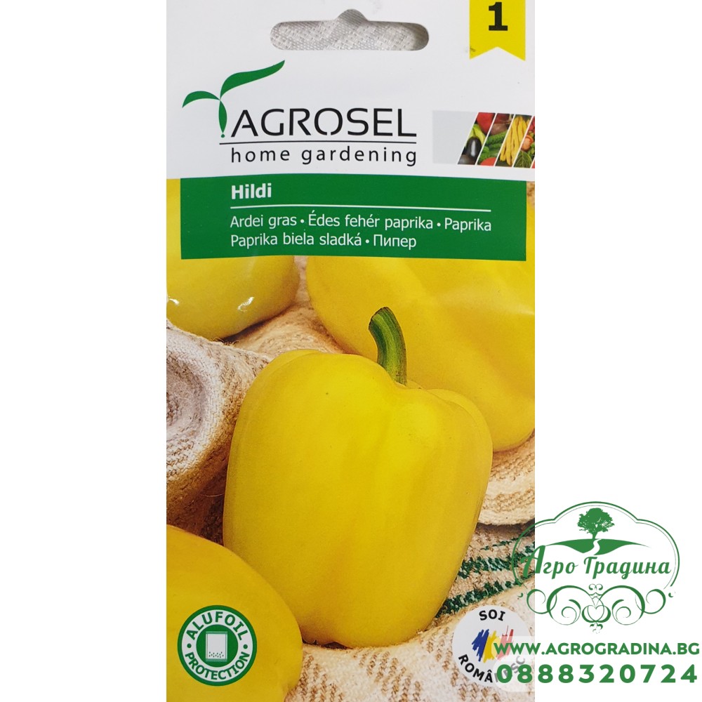 Н ашият он-лайн магазин agrogradina.bg представя на вашето внимание семена за пипер сорт Хилди. Плодовете са с конусовидна форма, жълти на цвят.