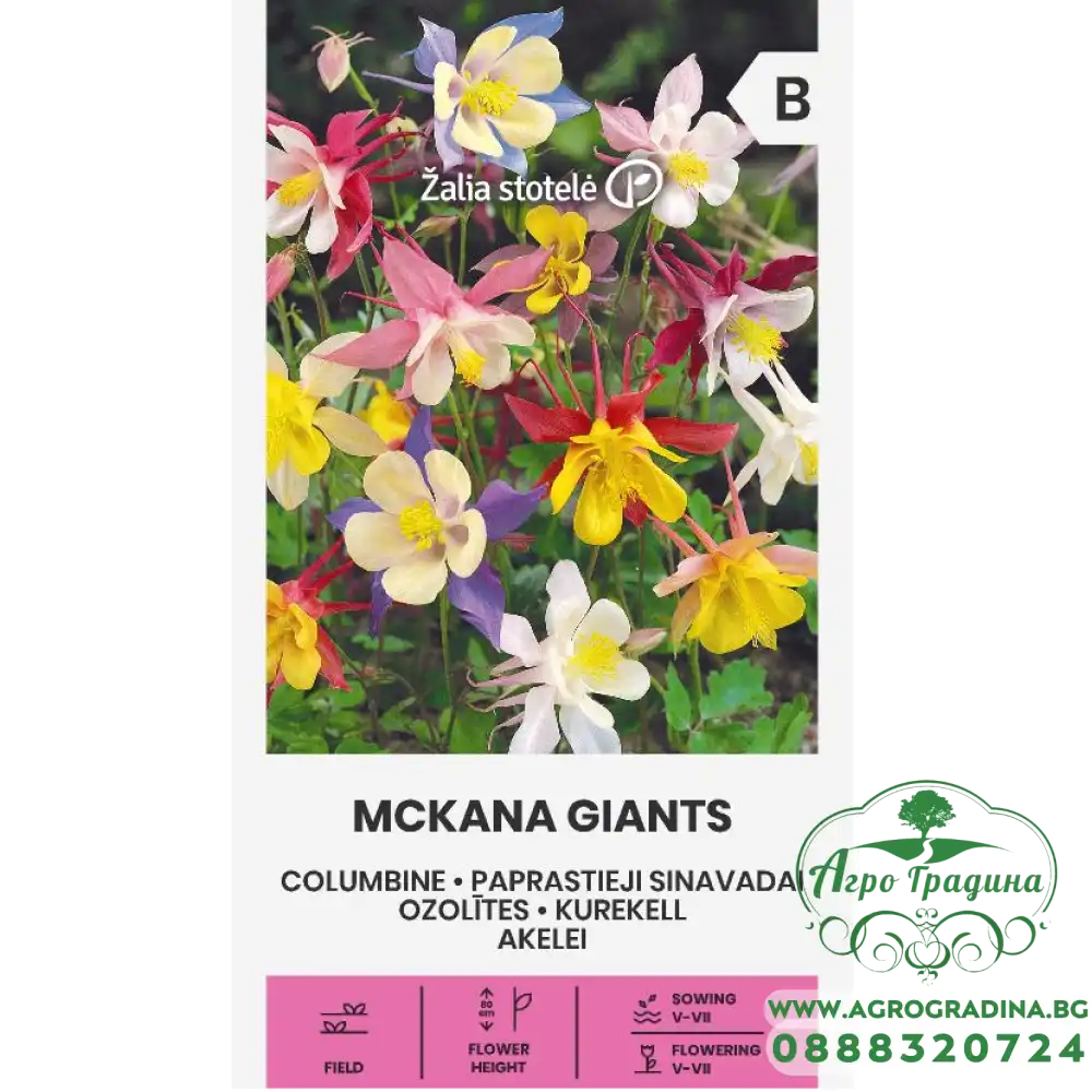 Многогодишно градинско растение с височина 80см. Този сорт Аквилегия е микс от цветове, изключително интересно смесени - лилаво – бяло, жълто – червено, жълто – бяло и др. Няма специфични изисквания може да се отглежда на пряко слънце и полусенчести места, не се препоръчва отглеждане на пълна сянка. Семената се засяват през месец март или април. При по-ранно засяване (Февруари на закрито или Март) цъфтят през първата година. Цъфтеж - м.Май - м.Юни. Семена от Аквилегия се засяват на дълбочина 0,3 см, като трябва добре да ги отъпчете, за да имат контакт с почвената влага. Поливайте редовно при изсъхване на почвата. Семената поникват от 12-16 дни. Може да расте години наред на едно и също място.