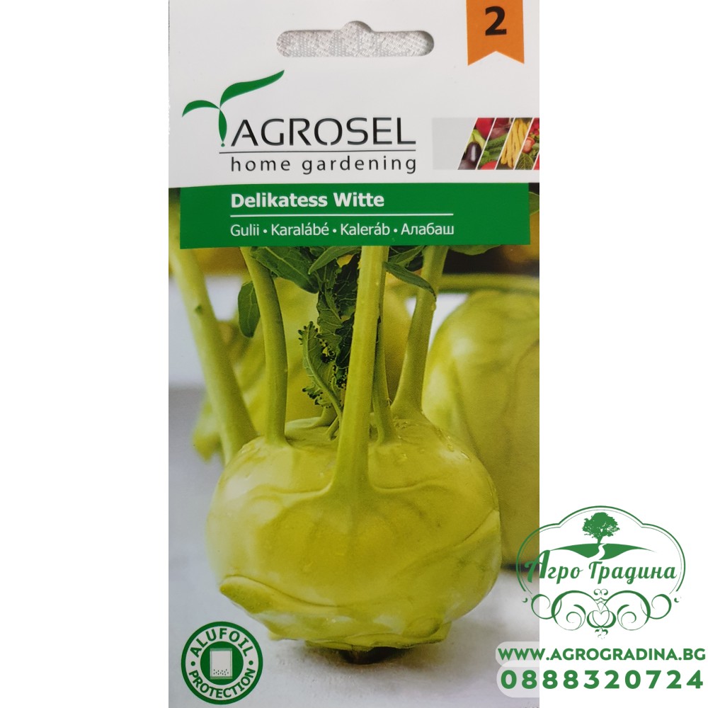 В нашият онлайн магазин agrogradina.bg ще може да намерите семена от Алабаш Деликатес бял. Интересното при него е, че той се отглежда заради своето стъбло, което нараства и се удебелява значително, образувайки топчесто тяло с хрупкава консистенция.