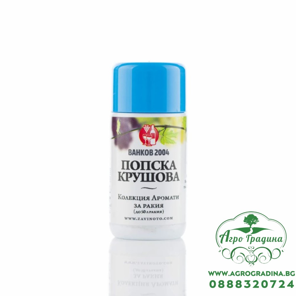 Ароматът за ракия „Попска Крушова“ е висококачествена ароматична есенция, създадена да придаде на домашната ракия мек, плодов и деликатно сладък характер, напомнящ на узрели ароматни круши. Той омекотява вкуса, въвежда естествен плодов нюанс и придава елегантност, без да променя прозрачността или структурата на напитката.