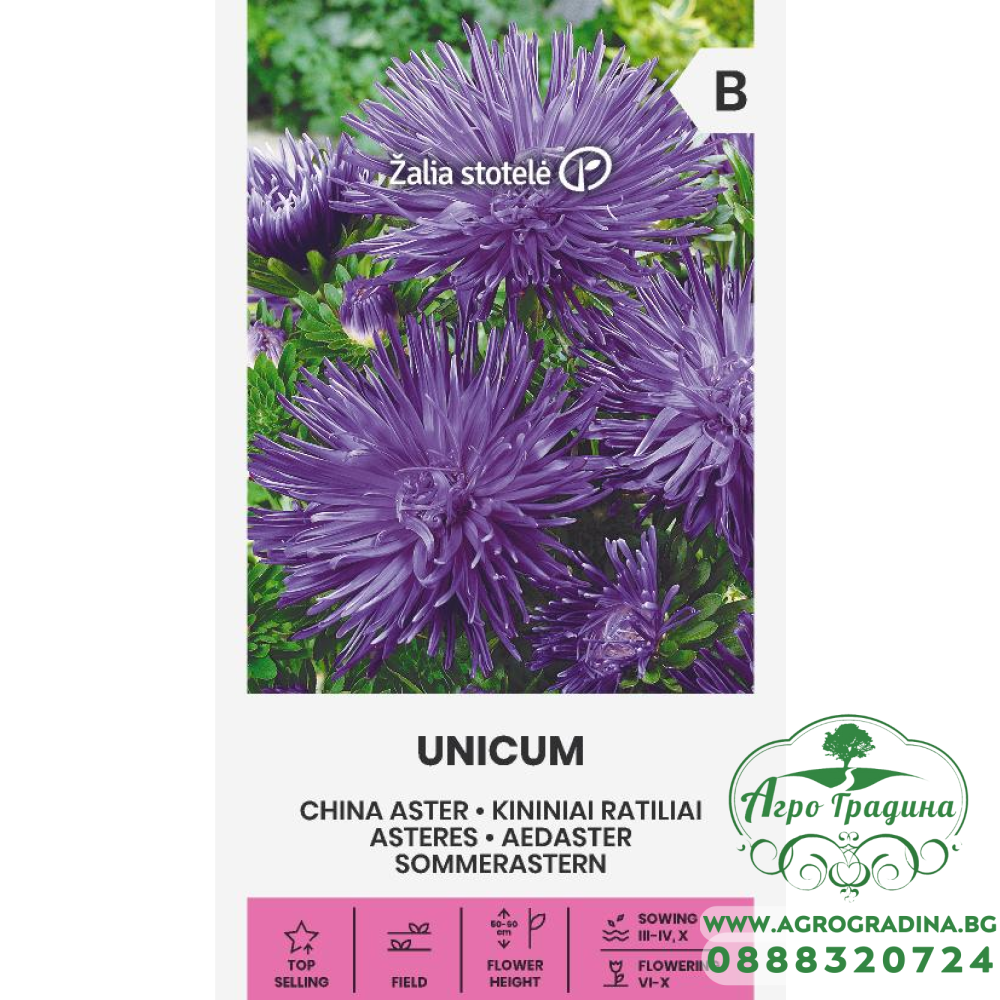 На нашия сайт ви представяме семена за игловидни сини Астри Китайски "Уникум" / Callistephus chinensis (L.) Ness "Unicum".
