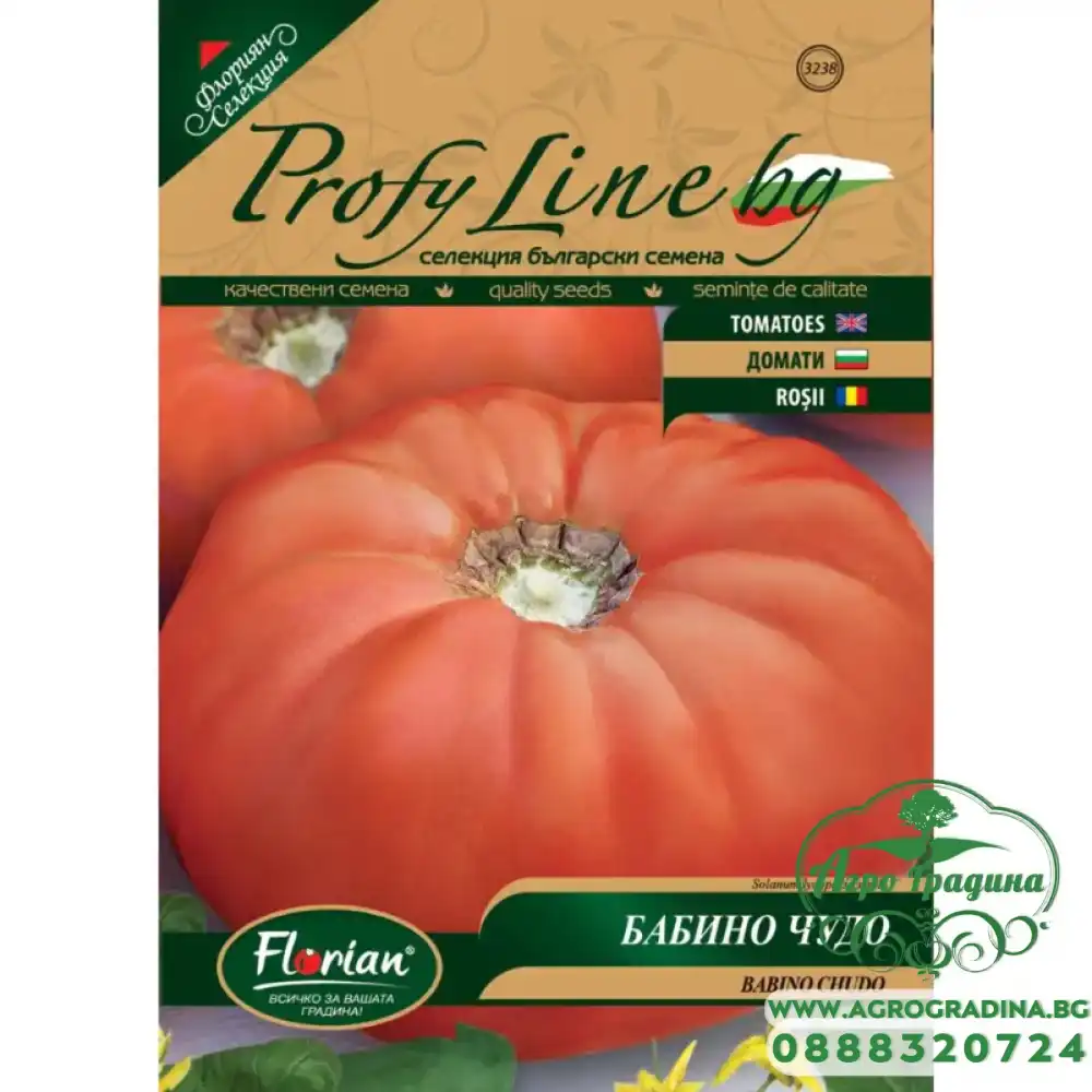 Домат Бабино чудо - български сорт гигант Онлайн магазин agrogradina.bg представя на вашето внимание семена за домати булгарски сорт гигант - Бабино чудо. Нов български индетерминантен, средноранозрял сор... Прочети повече...