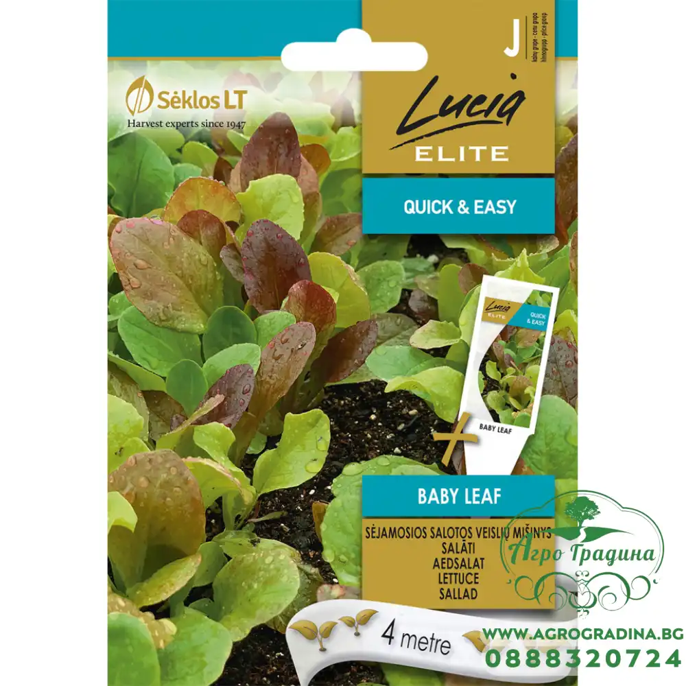 Смес от ранни сортове салати за отглеждане като „baby leaf“ – малки, крехки листа със свеж вкус и разнообразие от зелени и червени нюанси. Подходящи за директна консумация в салати и сандвичи. Листата са готови за беритба само за 35–50 дни.