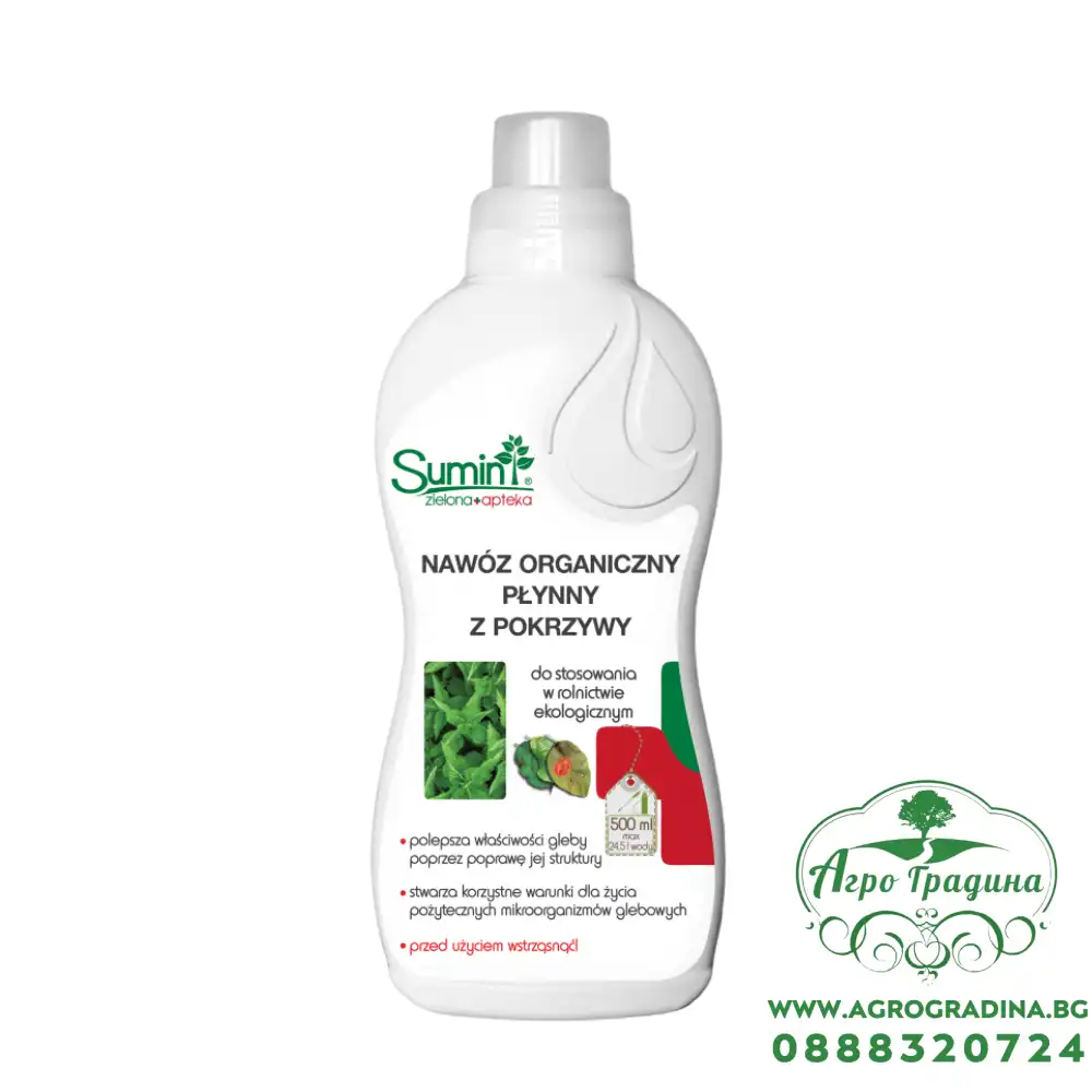 Онлайн магазин agrogradina.bg предлага Екстракт от коприва Sumin. Копривата е известна с високо съдържание на хранителни вещества, минерали и азот, които са ценен източник за органични екстра...