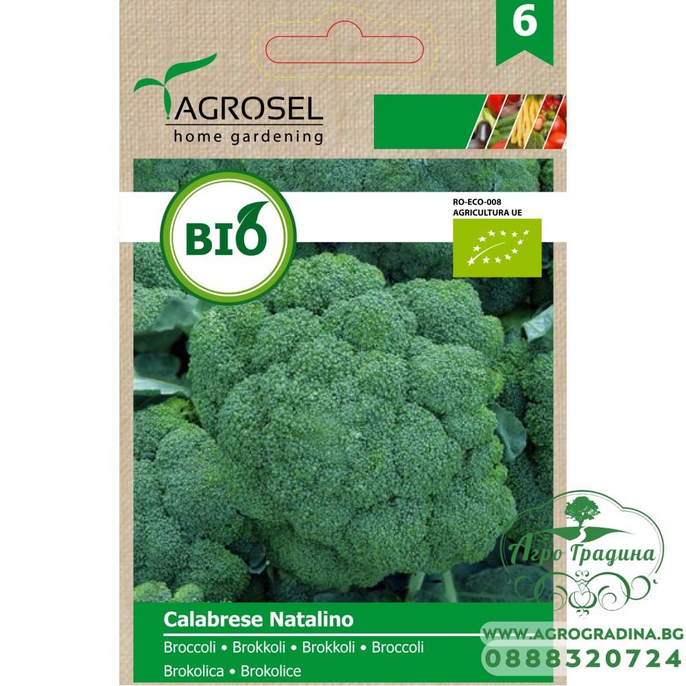 Онлайн магазин agrogradina.bg предлага БИО семена Broccoli Calabrese Natalino са отличен избор за любители градинари, които искат да получат богата продукция от броколи през пролетния сезон. Това са органични, сертифицирани качествени семена, които растат в рамките на 60-70 дни след разсаждането.