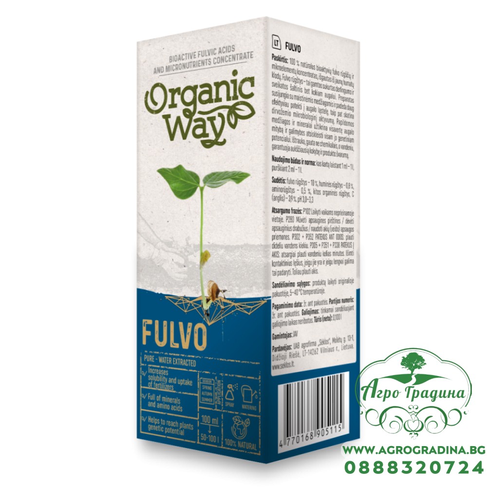 Концентратът на биоактивни фулви киселини и микроелементи се получава от млади хумати. Фулвиновите киселини са най-малката, най-скъпата и най-ефективна част от хуминовите киселини. Само фулвиновата киселина влияе пряко на физиологичните процеси в живите клетки. Популярните хуминови киселини не се харесват на растението, но са предназначени да подхранват микроорганизмите в почвата. Заедно с фулвиновите киселини те извличат изобилие от микро- и макроелементи, полифеноли, восъци и други активни вещества. Той е биоактивен, естествен и изключително чист източник на енергия и здраве за всяка клетка. Концентратът се добива по "щадяща" технология и само с вода (100% натурален продукт) .Това гарантира, че всички материали остават непокътнати и полученият продукт е с най-високо качество. FULVO е еликсир за живот и здраве, не само за вашите растения, но и за почвената микрофлора.
