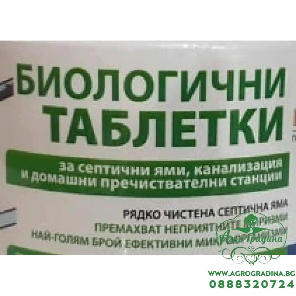Биологичните таблетки преобразуват съдържанието на изгребната яма в течно състояние. Редовното използване предотвратява възникване на неприятни миризми. Таблетките не замърсяват околната среда. 1 таблетка се равнява приблизително на 400 милиона бактерии.