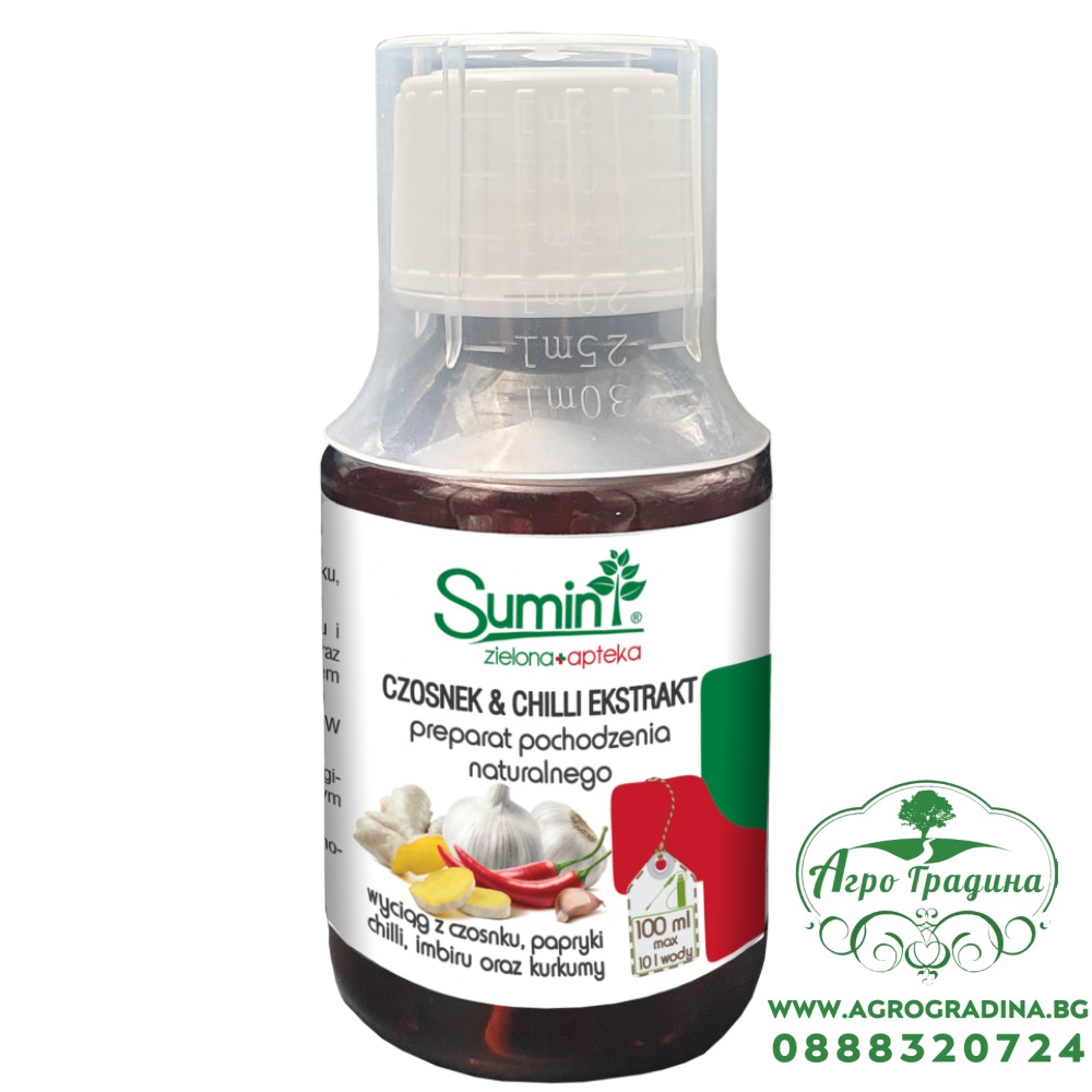 Онлайн магазин agrogradina.bg предлага Екстракт от фитонцидни растения Sumin - натурален продукт за грижа за всички видове растения, предназначен за контрол на вредителите, които увреждат растенията, чрез създаване на неблагоприятни условия за тяхното съществуване и хранене.