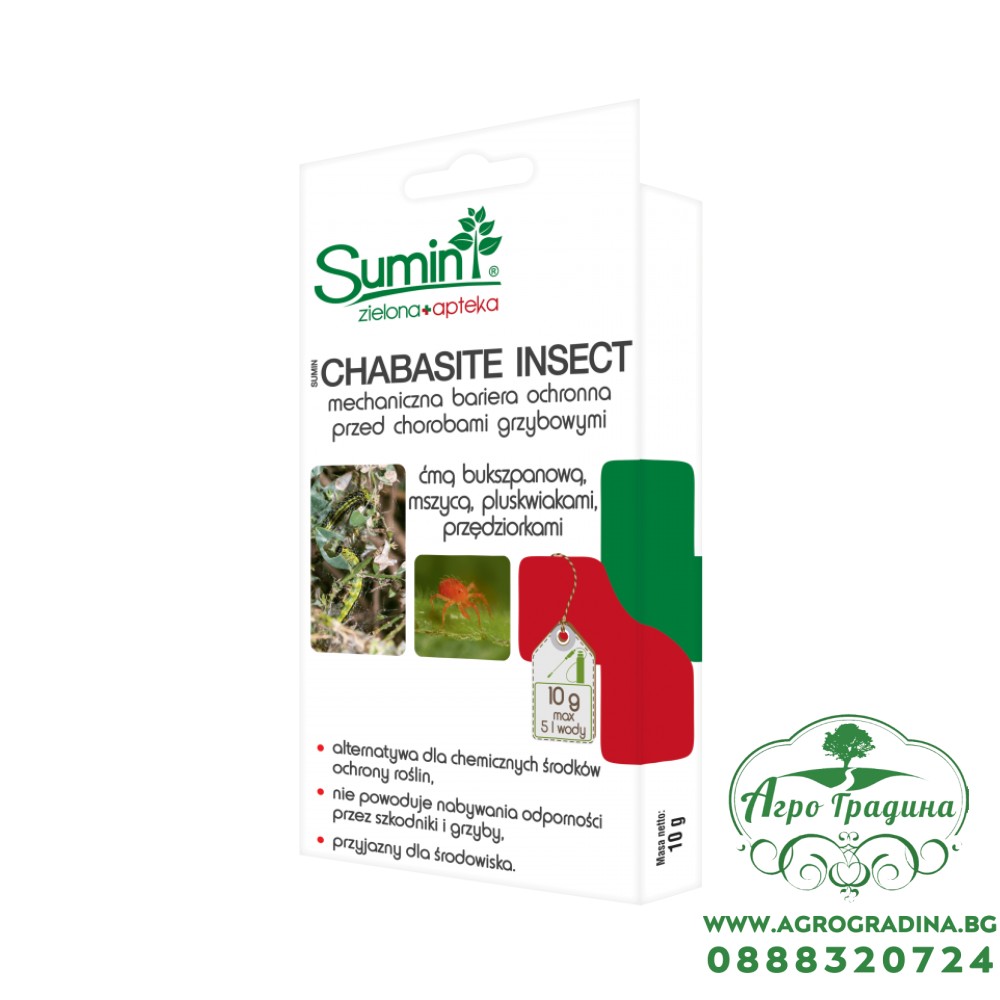 Онлайн магазин agrogradina.bg предлага биопрепарат с шабазит,за контрол над насекомите по растенията- Sumin CHABASITE INSECT.