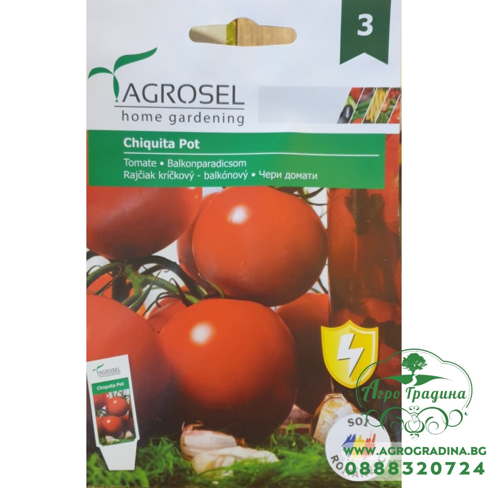 Балконски Чери домати Чикита Пот / Chiquita Pot Нашият он-лайн магазин agrogradina.bg представя на вашето внимание семена за чери домати Чикита Пот / Chiquita Pot - доматчета с уникален сладък вкус и наситено черве... Прочети повече...