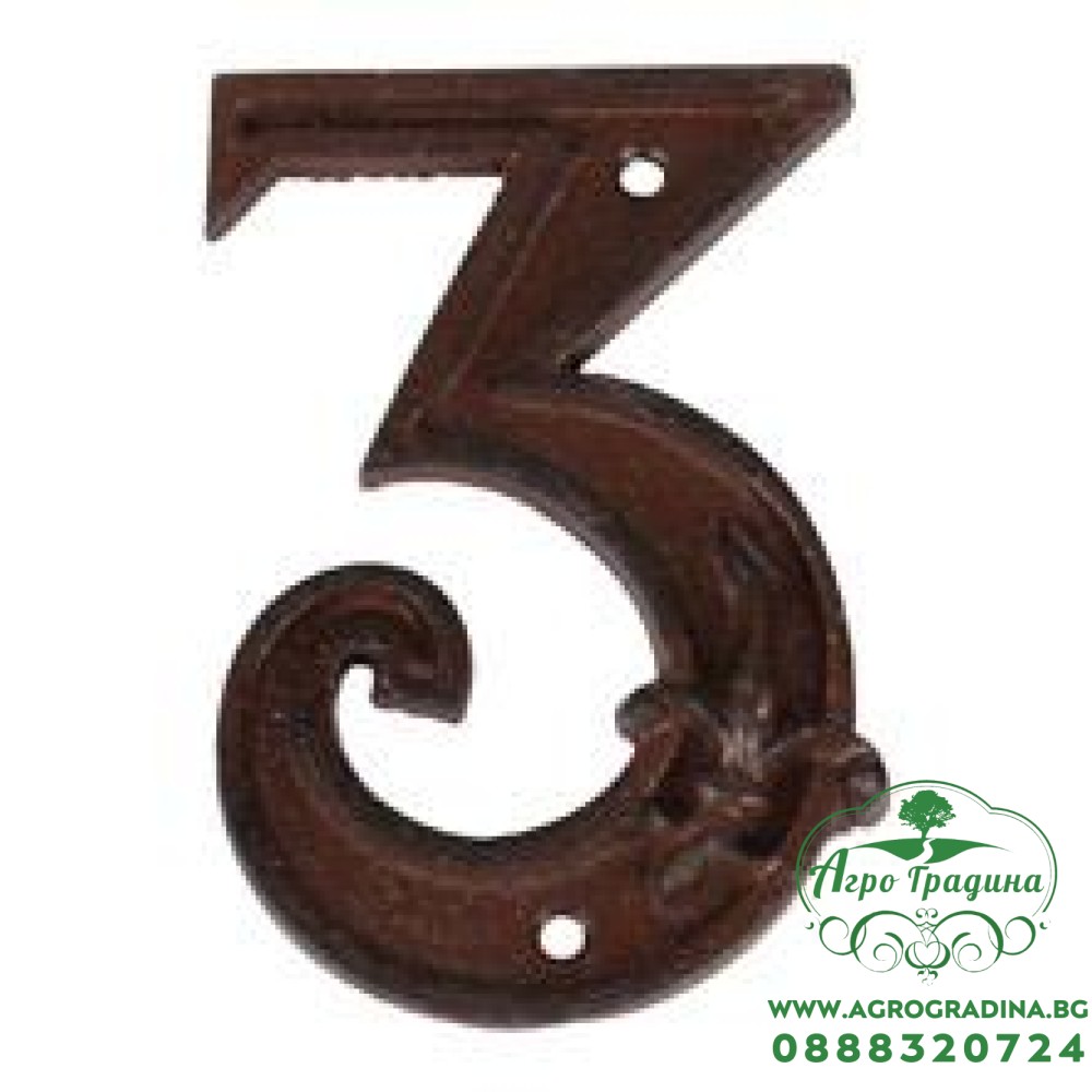 Онлайн магазин agrogradina.bg представя чугунена цифра 3 за порта или врата.