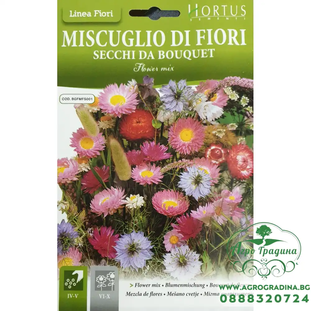 Микс за сухи цветя. Засаждат се на разстояние от 40 - 50 см на ред. Подходящи за по засушени терени, не изискват обилно поливане, лесни за отглежд...
