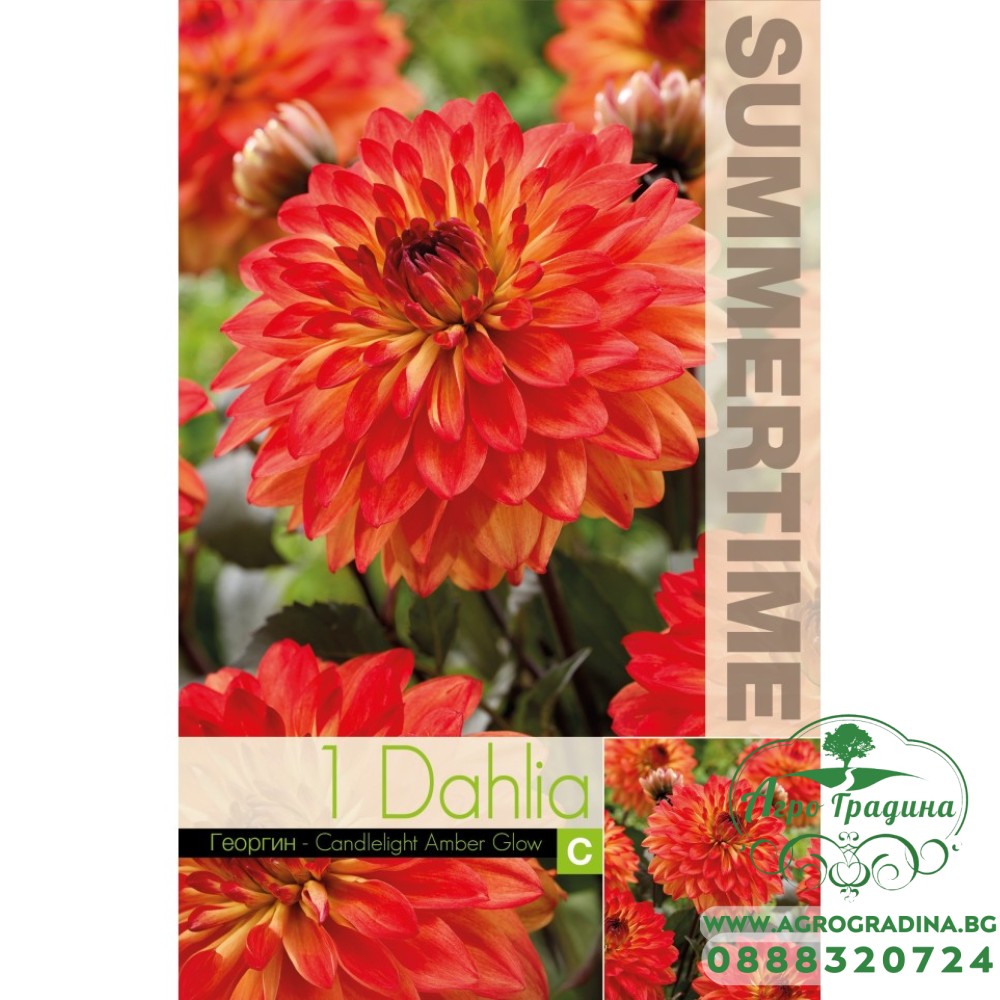 Далия Candlelight Amber Glow е впечатляващ многогодишен декоративен сорт с топъл оранжев цвят и дълъг, обилен цъфтеж през цялото лято. Растението достига около 70 см височина и е подходящо за отглеждане в градината, цветни лехи и бордюри.