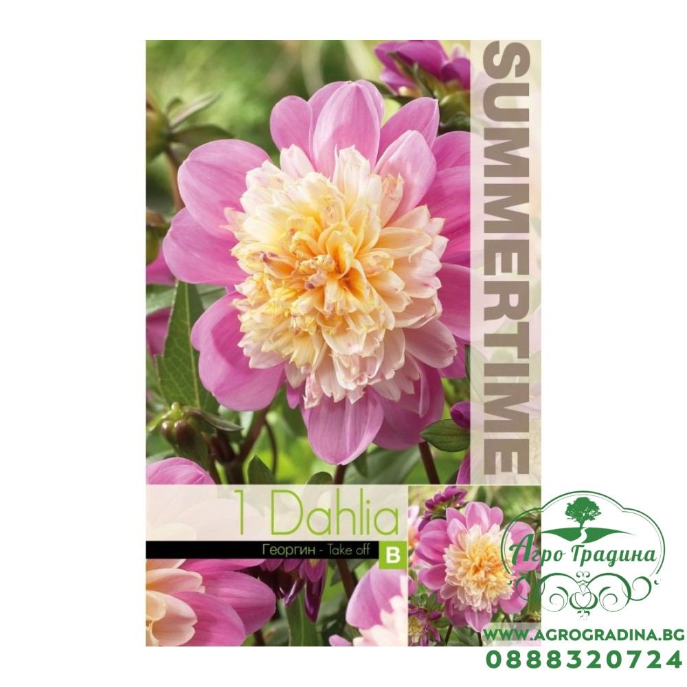 Онлайн магазин agrogradina.bg предлага луковици за Далия (Гергина) "Take off" / Dahlia Cav.  - декоративен сорт от рода Далия, известен със своите кичести, ярко обагрени цветове и компактен растеж.