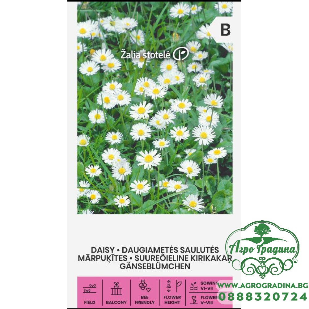 Бели Маргаритки / Bellis perennis Онлайн магазин agrogradina.bg представя на вашето внимание семена за бели маргаритки / Bellis perennis. Bellis perennis са многогодишни цветя с височина 10 см. Цветовете са с диаме... Прочети повече...