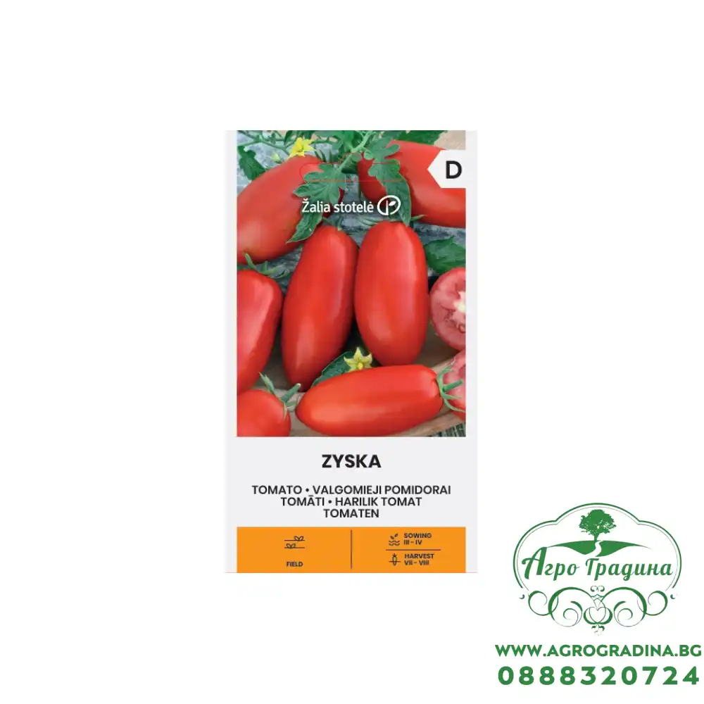 Домат Зиска / Tomato Zyska Онлайн магазин agrogradina.bg предлага семена за Домат Зиска / Solanum lycopersicum L. Zyska. Средноранен, детерминантен сорт домати с висока продуктивност, подходящ за отглежда... Прочети повече...