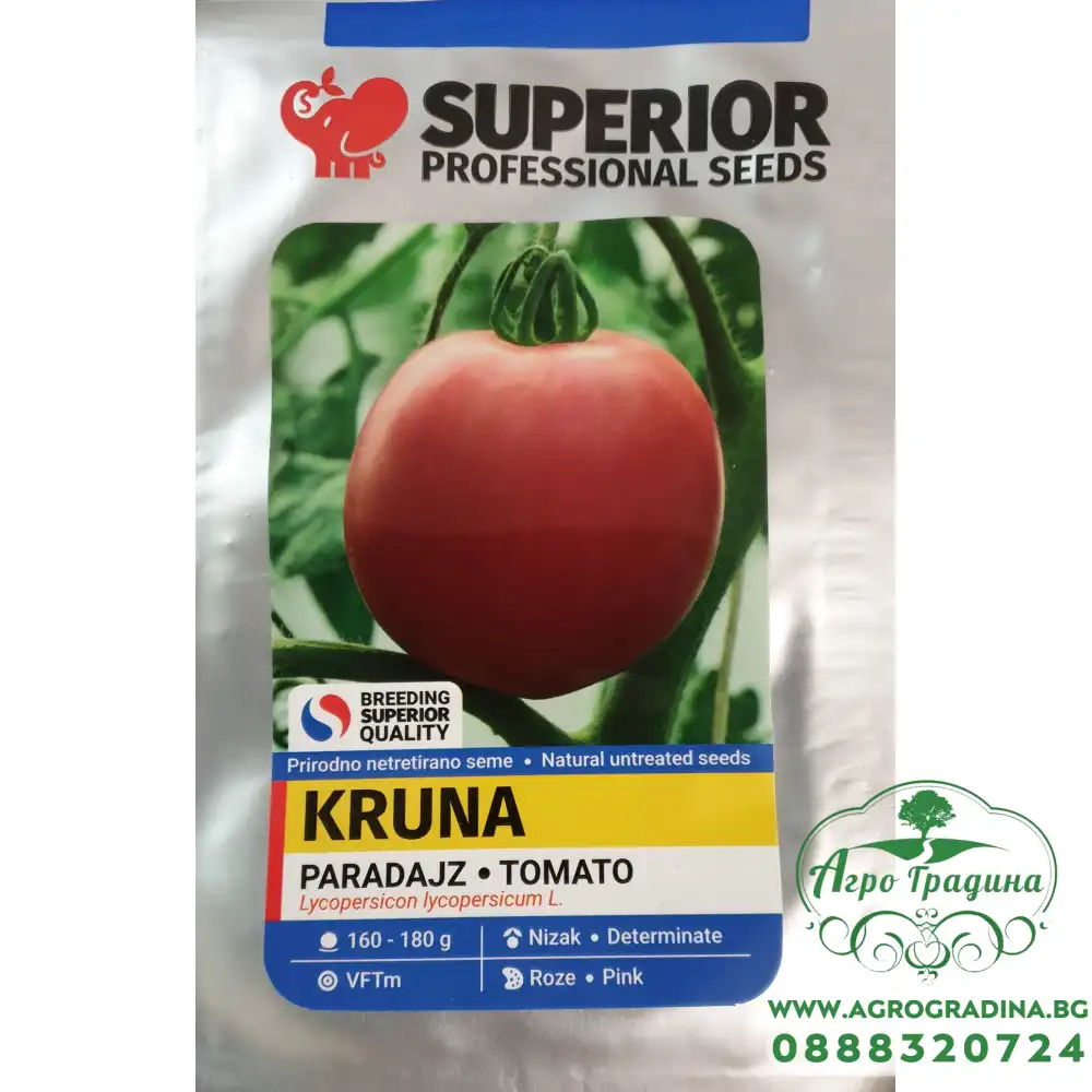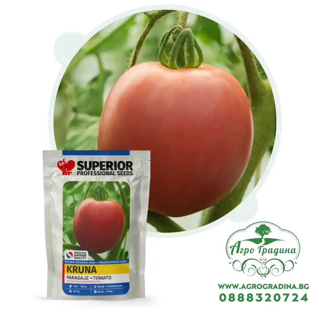 Нашият он-лайн магазин agrogradina.bg представя на вашето внимание семена за домати сорт Круна. Този сорт домати е ранен без колов, с розови плодове.
