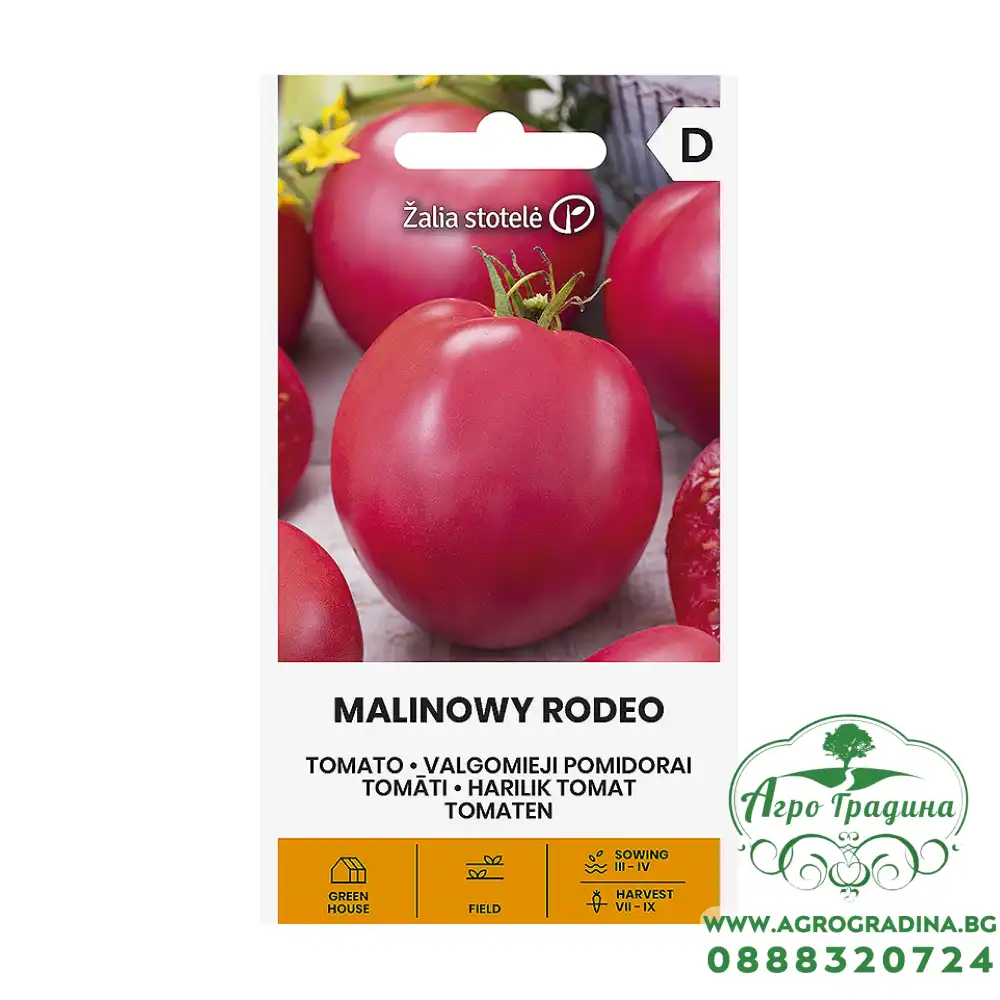 Домат Малиново родео Нашият он-лайн магазин agrogradina.bg представя на вашето внимание семена за домати Малиново родео. Този сорт домати е с приятно розов цвят и е във формата на сърце. Високодобивен, детерминиран... Прочети повече...