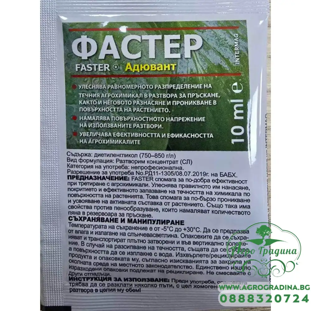 Етикети: диетиленгликол, Фастер, FASTER, адювант, прилепител, прилепване, ефективност, агрохимикали, 10мл, прилепител,