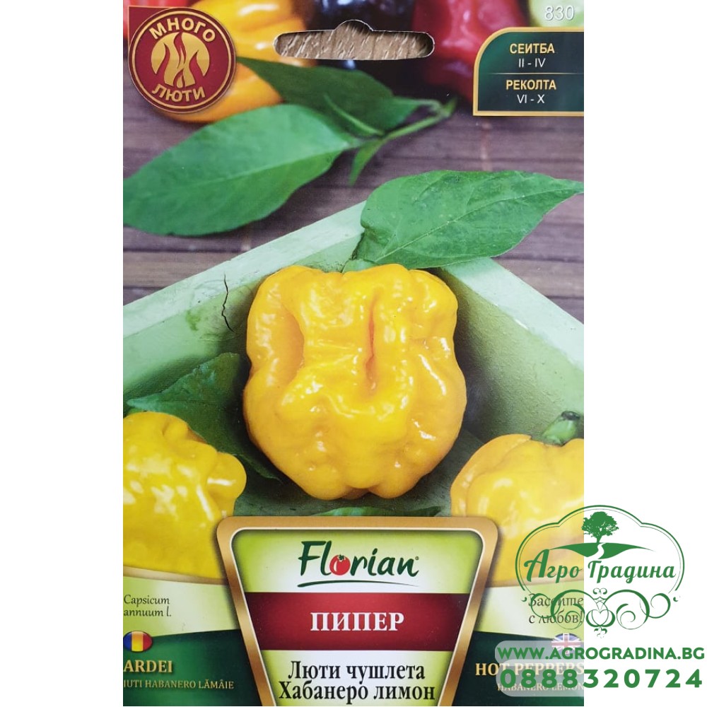 Много люти чушлета - хабанеро Лимон Супер ранен сорт пипер, известно още като жълто хабанеро. Предназначен е за отглеждане на открито или в саксия. Растението достига височина до 80 см., силно облистено и отрупано. Пл... Прочети повече...