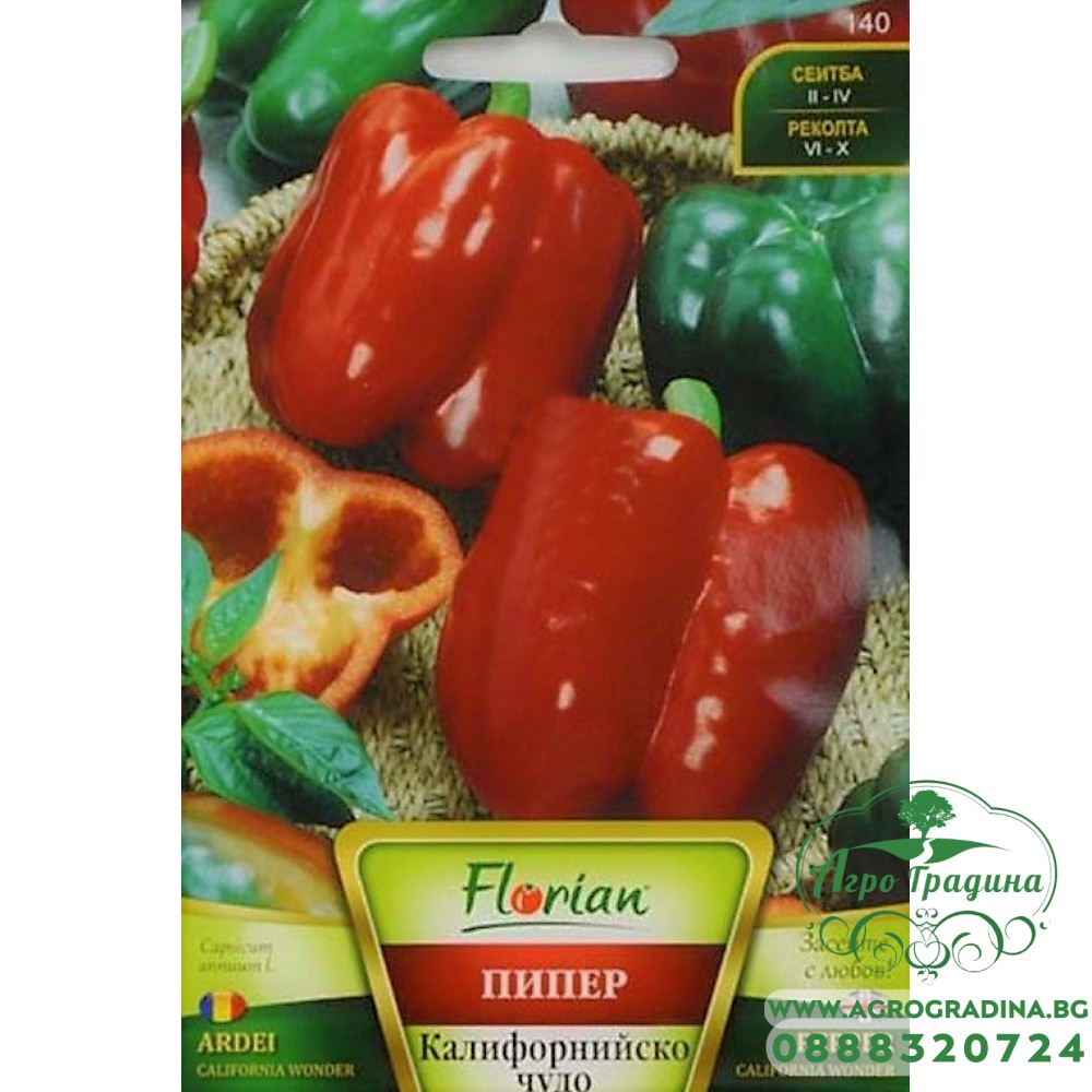 Нашият он-лайн магазин agrogradina.bg представя на вашето внимание семена за пипер сорт Калифорнийско чудо. Този сорт пипер се отличава със своите големи, месести, ароматни и изключително вкусни.