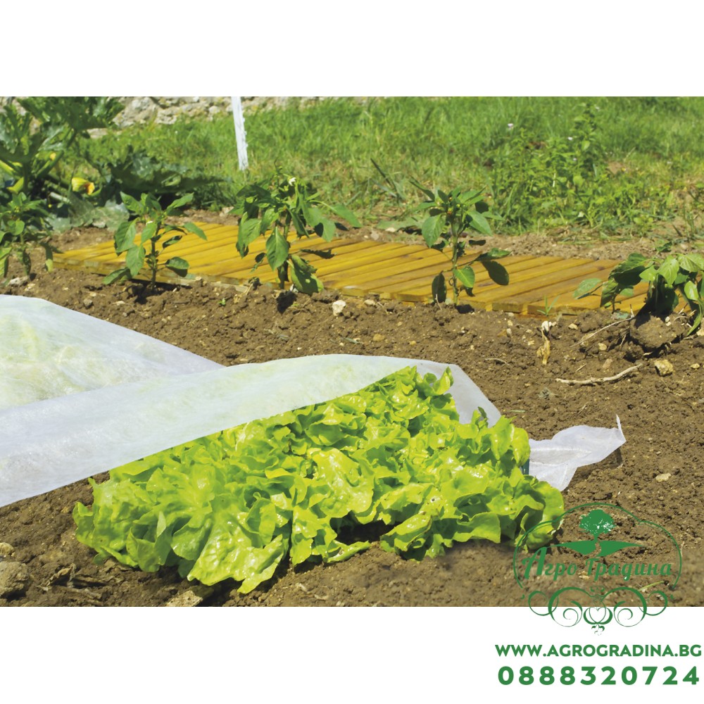 Полипропилен – 17g/m². UV стабилизирано. Поставянето на агрила върху младите растения насърчава тяхното развитие. Той е много лек и се поставя директно върху растенията, които го повдигат нагоре докато растат. Неговата нетъкана структура позволява на въздуха, водата и светлината да проникват. По този начин, всички елементи, които са от съществено значение за производството на богата реколта са налице. Агрила създава микроклимат, който предпазва младите растения от студ, силен дъжд и градушка. В допълнение, създава ефективна бариера срещу насекоми и птици. Реколта може да израсне от 1 до 3 седмици по-рано.Може да се използва и при засяване цветя. Този продукт е екологично чист. При изгаряне не отделя никакви токсични елементи.