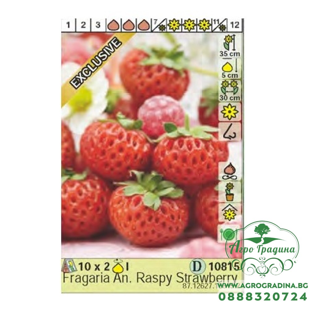 Онлайн магазин agrogradina.bg предлага корени за Ягоди Распи / Fragaria × ananassa Raspy Strawberry  - уникален сорт градинска ягода (Fragaria × ananassa), който се отличава с комбинация от качества на ягоди и малини.