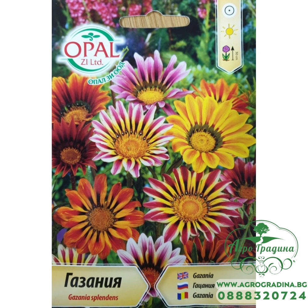 Газания микс Растение с пъстри цветове и височина 30-40см. Предпочита слънчеви изложения. Подходящо за украса на бордюри, цветни петна в градини, балконски саксии и сандъчета. Засявайте семената м.Февруари - м.Май за ... Прочети повече...