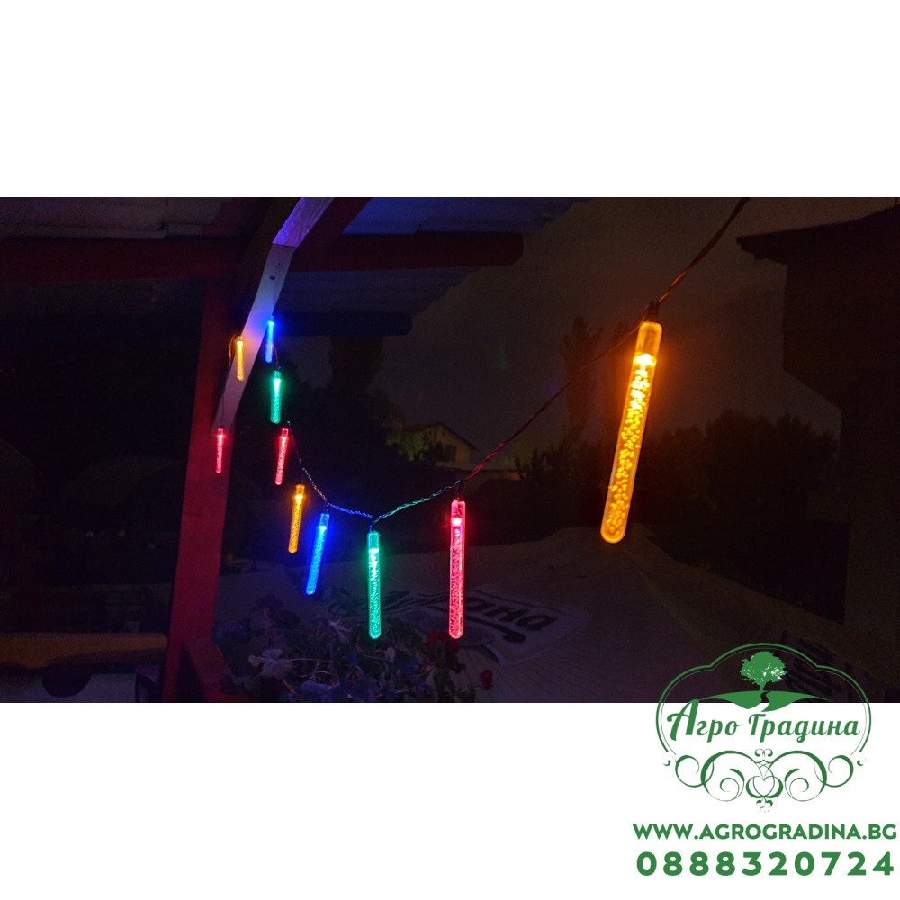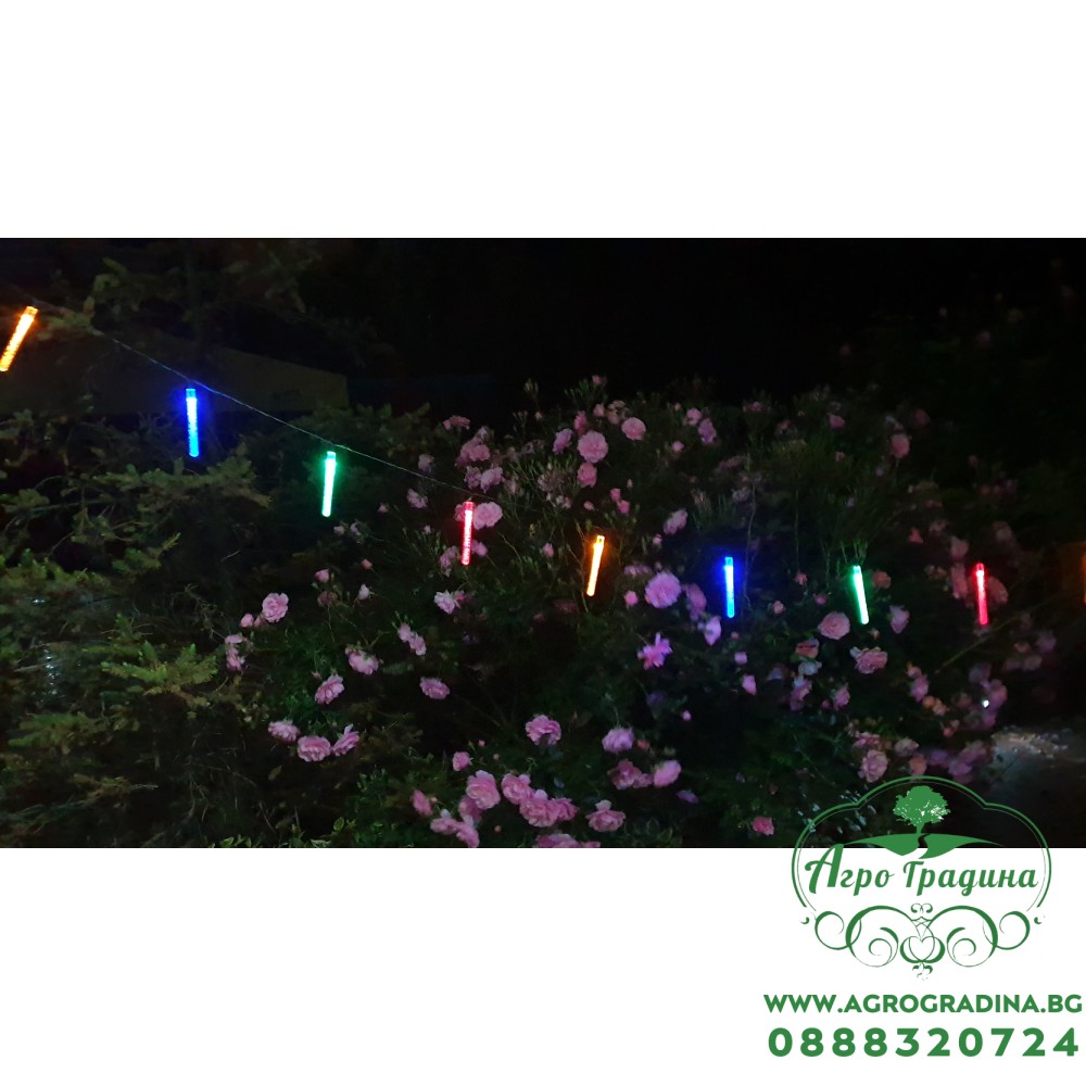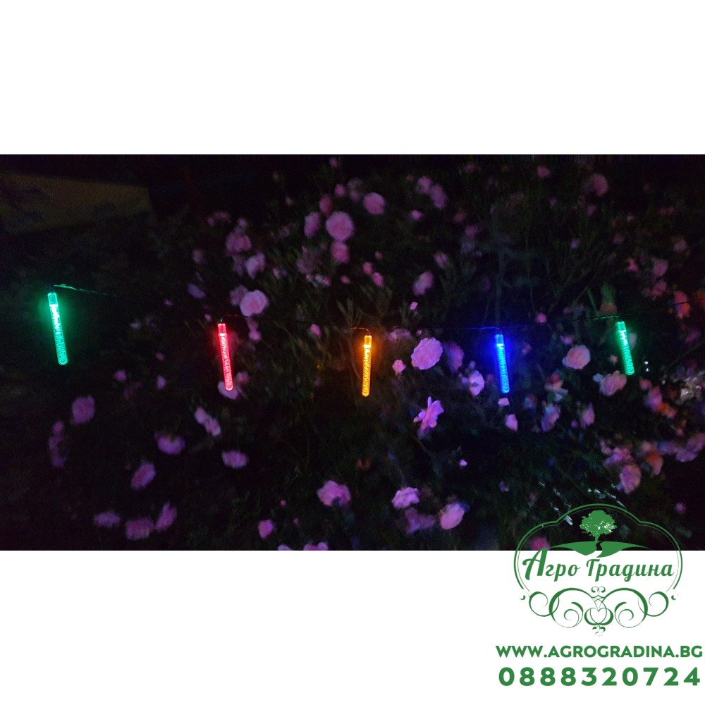 Гирлянд с 10бр. Соларни светещи стикове – LED: 10бр. Цветни LEDs, - Батерия:AAA NI-MH 1.2V/300 mAh, 5x5cm аморфна батерия - 2м водач, 20cm разстояние между крушките, общо 3.8м - Светещ стик размер:0.95x10... Прочети повече...