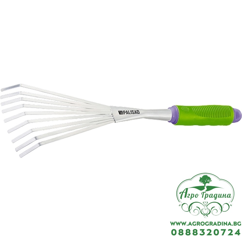 Гребло за листа тип «ветрило», 9 зъба, с гумирана дръжка, която при необходимост може да се удължи. Ширина на раб...