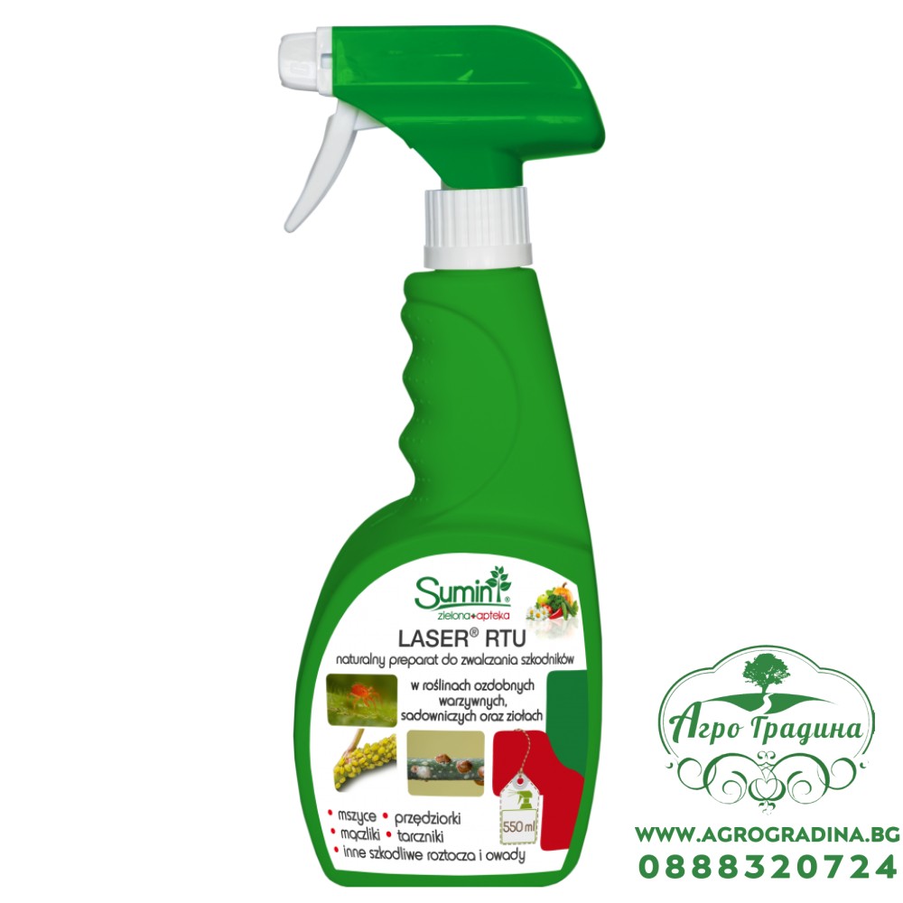 Онлайн магазин agrogradina.bg предлага готов за употреба натурален продукт за контрол на увреждащи растенията насекоми и акари - Sumin LASER RTU.
