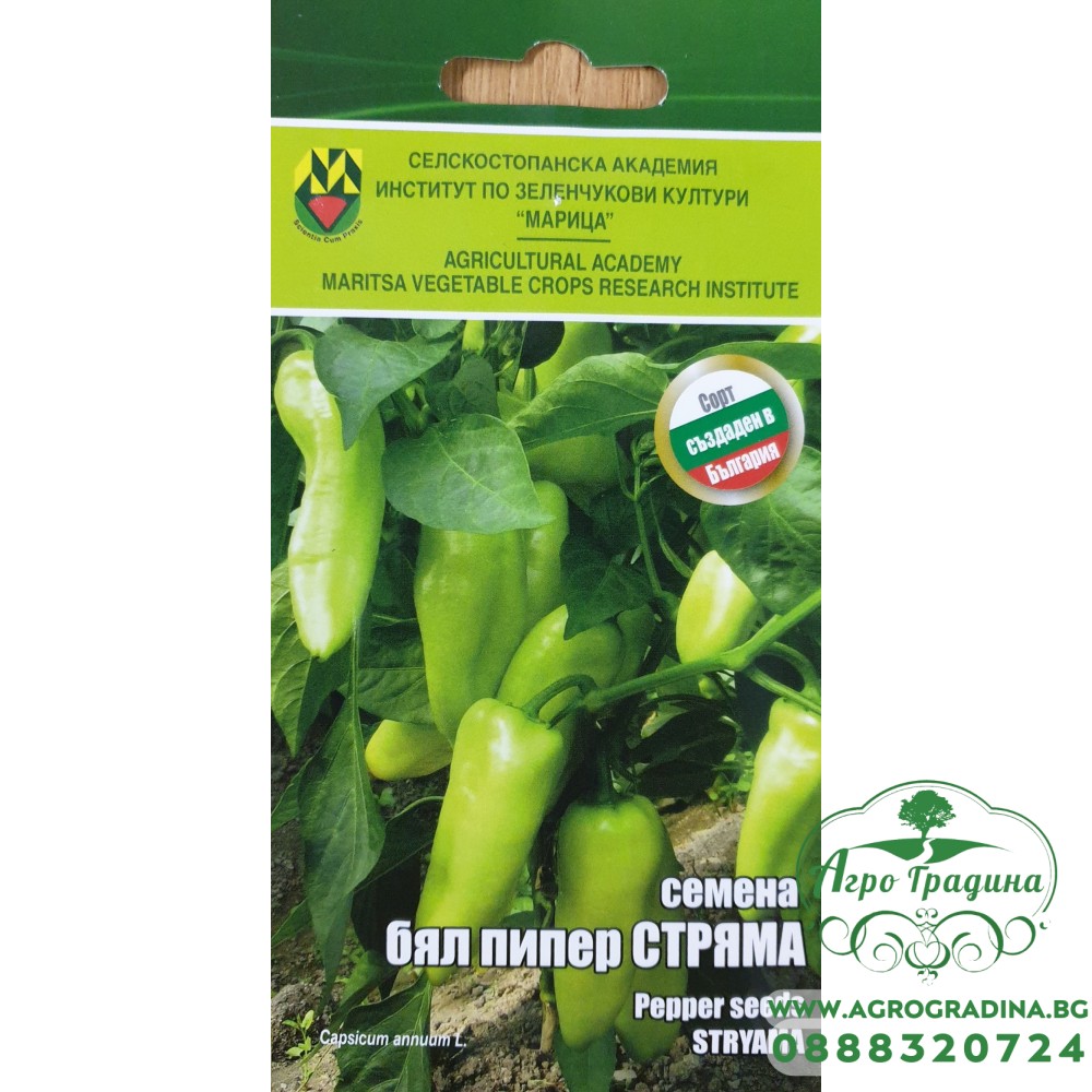 Нашият он-лайн магазин agrogradina.bg представя на вашето внимание семена за пипер сортСтряма. Този български сорт пипер е тип бяла капия, с месести, тежки и много вкусни плодове.