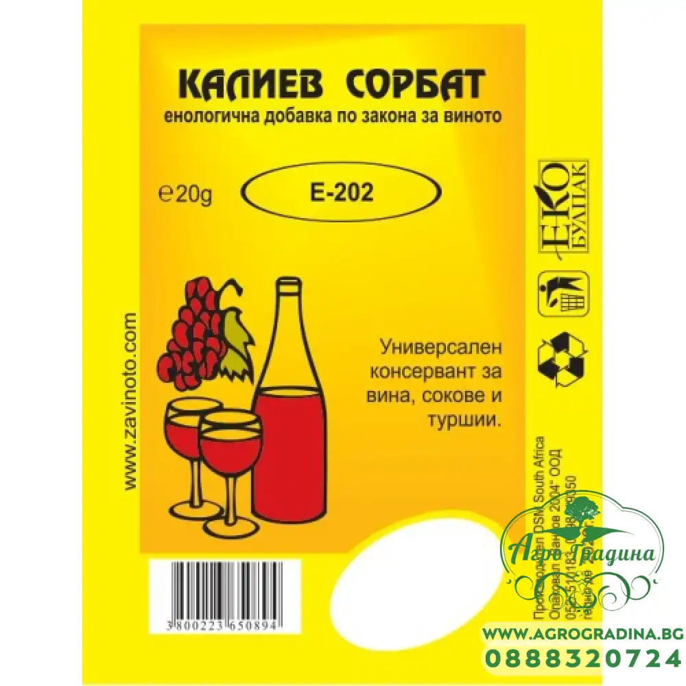 Калиев сорбат Дозировка: 1-2гр на литър за туршии, сладки вина и гроздови сокове. Предназначение: Използва се като консервант. Съхранение: Да се съхранява на сухо и хладно място. Приложение Необходимото ко... Прочети повече...