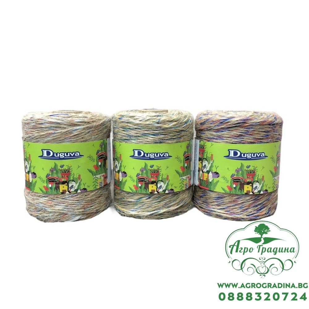 Практично решение за градинарство и селскостопански дейности. Комбинацията от естествена юта и синтетични материали осигурява добра здравина, устойчивост на опъване и гъвкавост. Подходящ е за подвързване на растения, фиксиране на конструкции и универсална употреба в дома и двора.