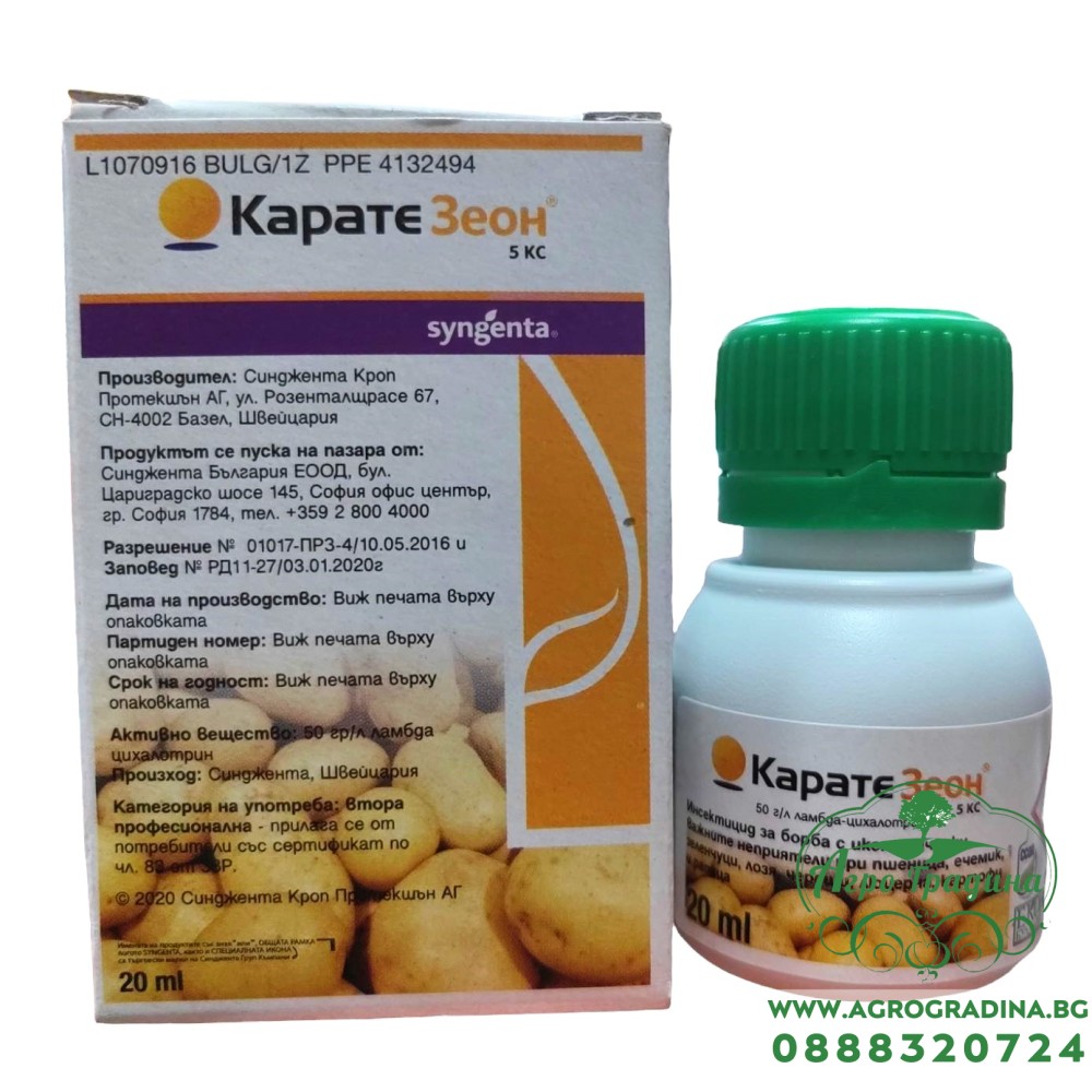 Карате Зеон 5 СК - Инсектицид с Микрокапсулирана Формула - 20 мл Онлайн магазин agrogradina.bg предлага иновативен пиретроиден инсектицид за комплексна защита на култури Карате Зеон 5 СК. Карате Зеон е широкоспектъ... Прочети повече...