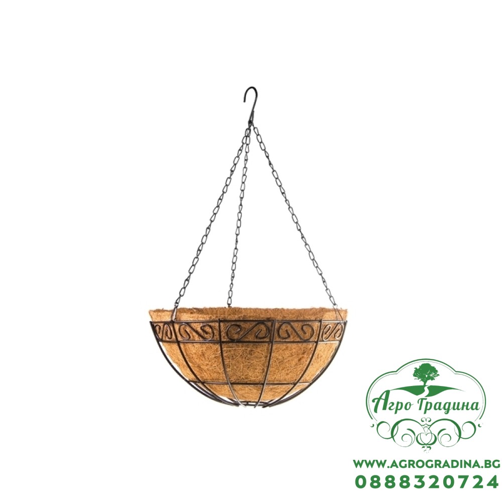 Луксозна конструкция – здрава кашпа от ковано желязо с елегантна верижка и кука за лесно окачване.
