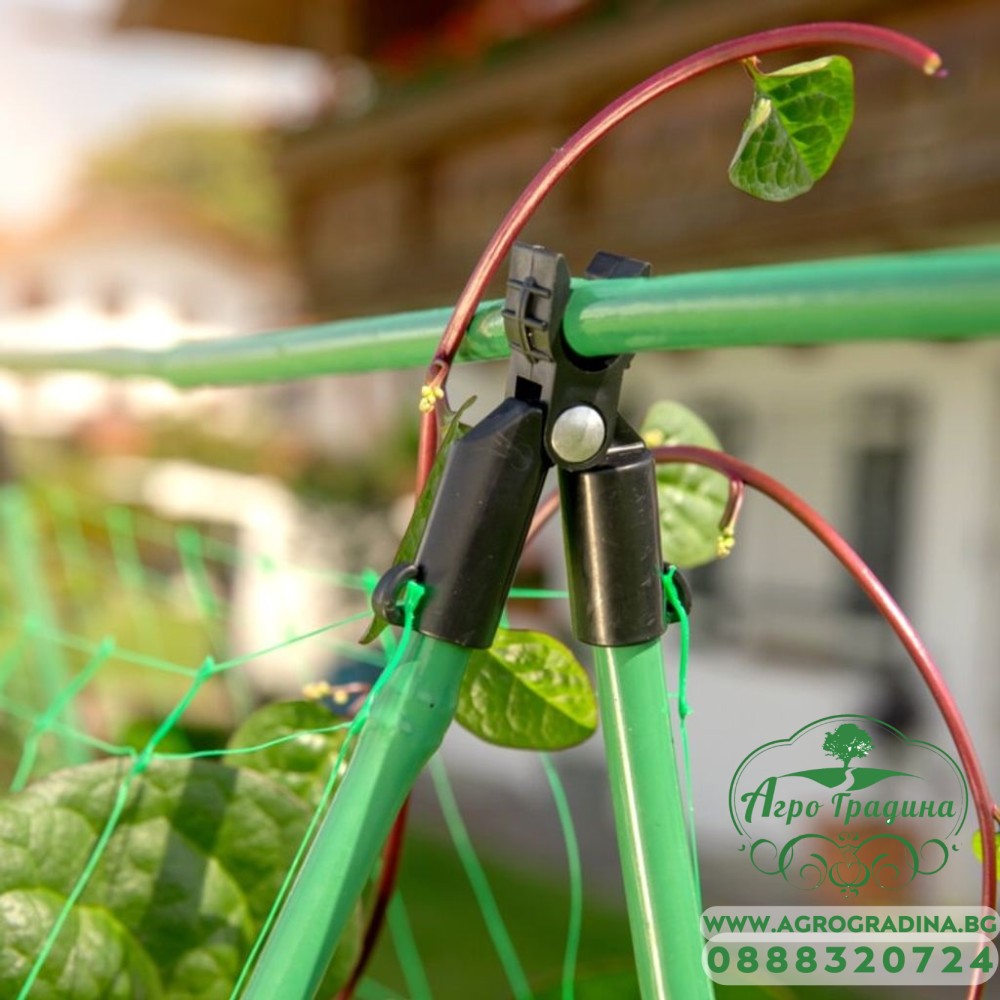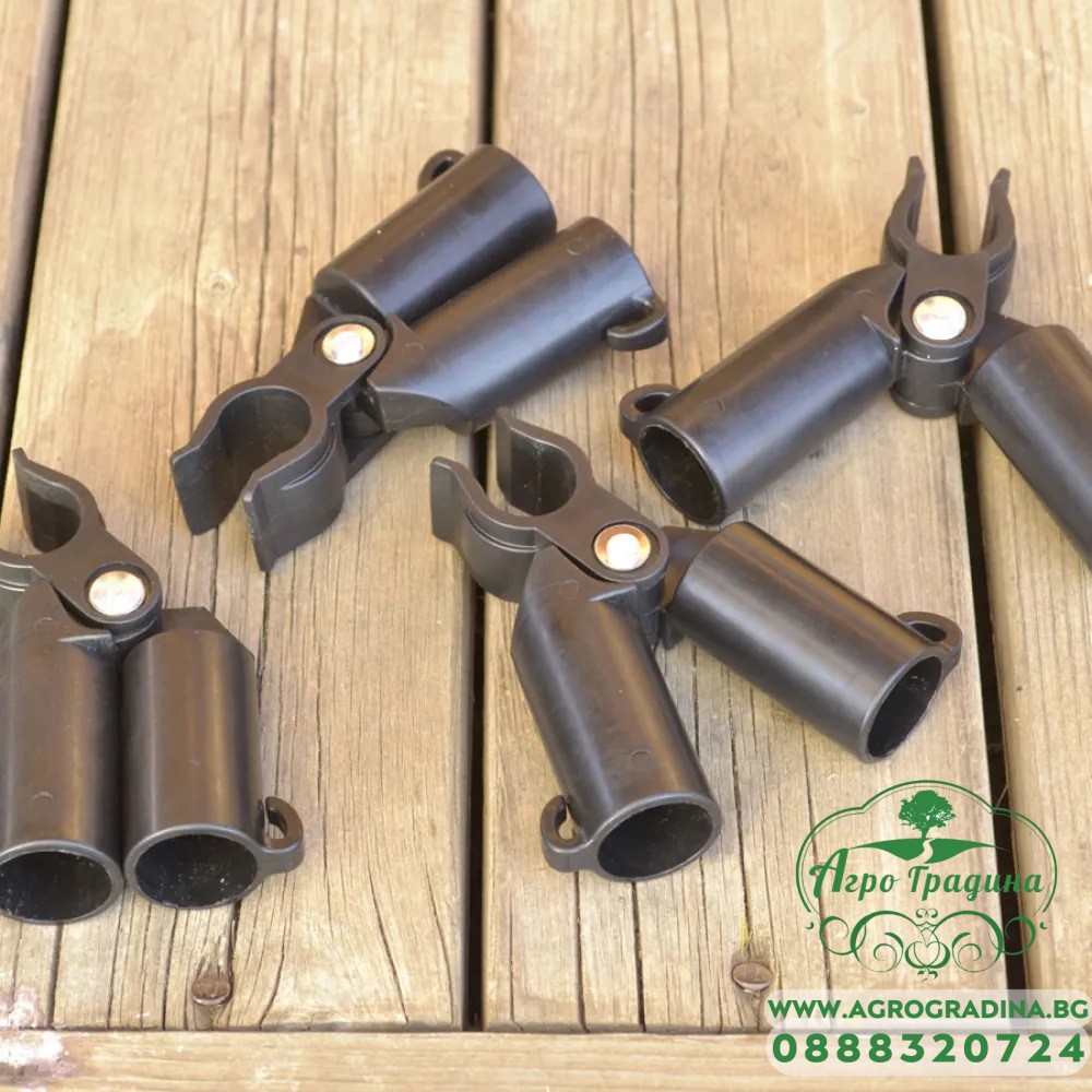 Конекторите тип А са предназначени за създаване на стабилни триъгълни конструкции от колчета за домати например. Разполагат с допълнителна щипка в горната част за закрепване на напречен ...