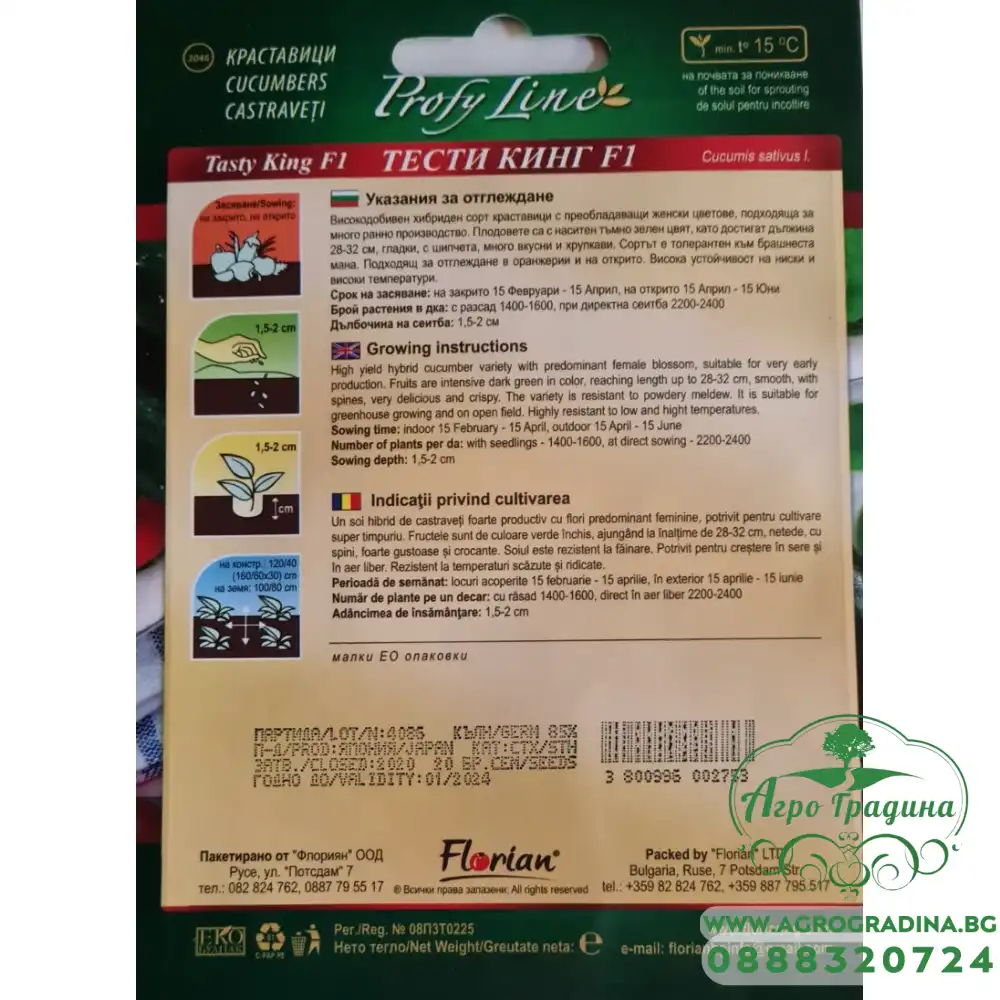 Нашият он-лайн магазин agrogradina.bg представя на вашето внимание семена за краставици сорт Тести кинг F1. Този сорт краставици освен със своите невероятни вкусови качества се отличава и с изключителна устойчивост към ниски и високи температури.
