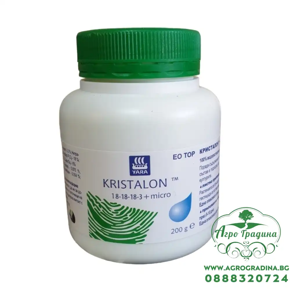 Онлайн магазин agrogradina.bg представя на вашето внимание ЕО Тор Кристалон / Kristalon 18-18-18-3 + micro – специален (зелен) за листно подхранване и фертигация.