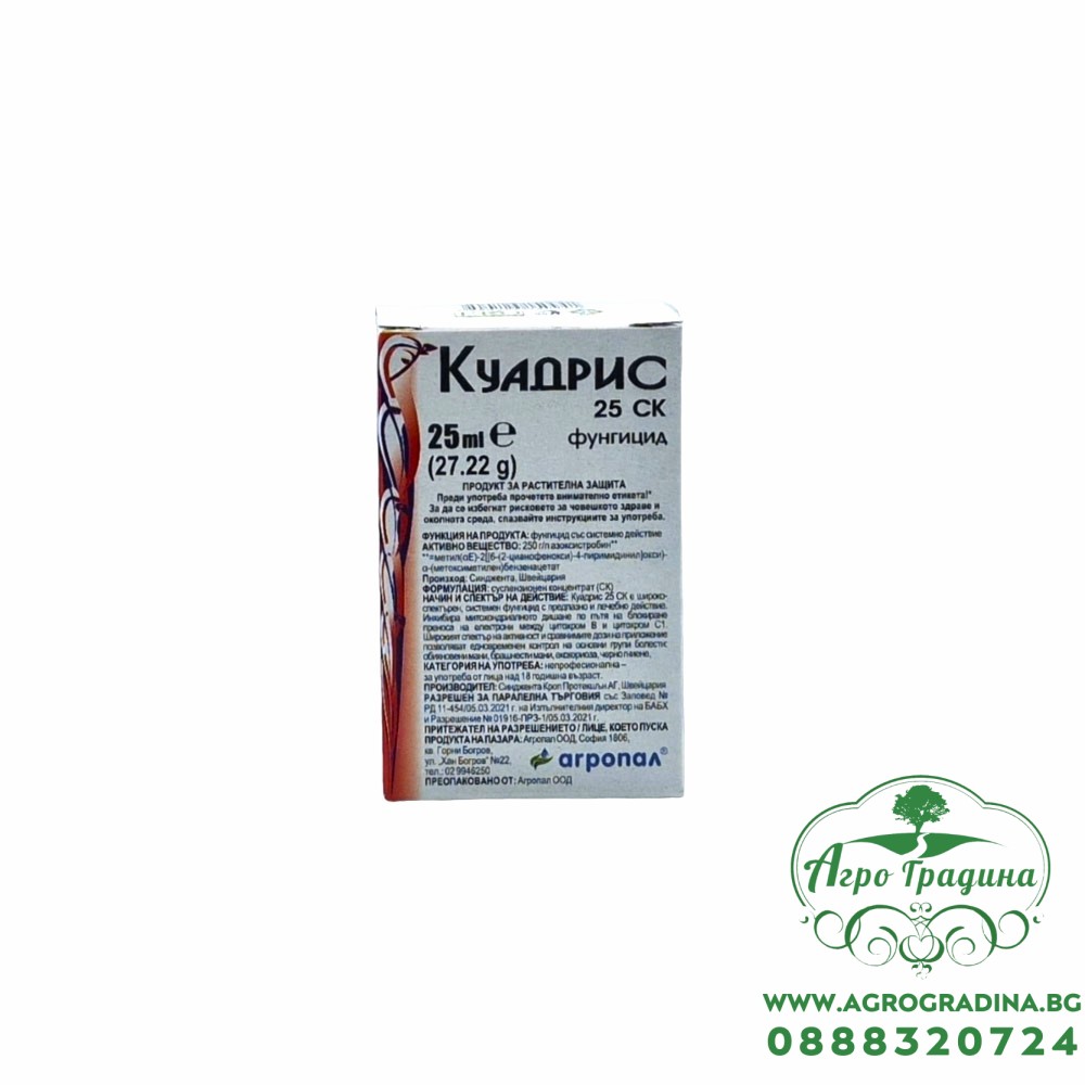 Етикети: комбиниран, фунгицид, Куадрис, 25, СК, широкоспектърен, 25мл, азоксистробин,