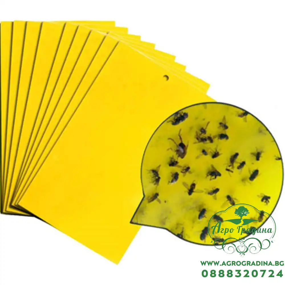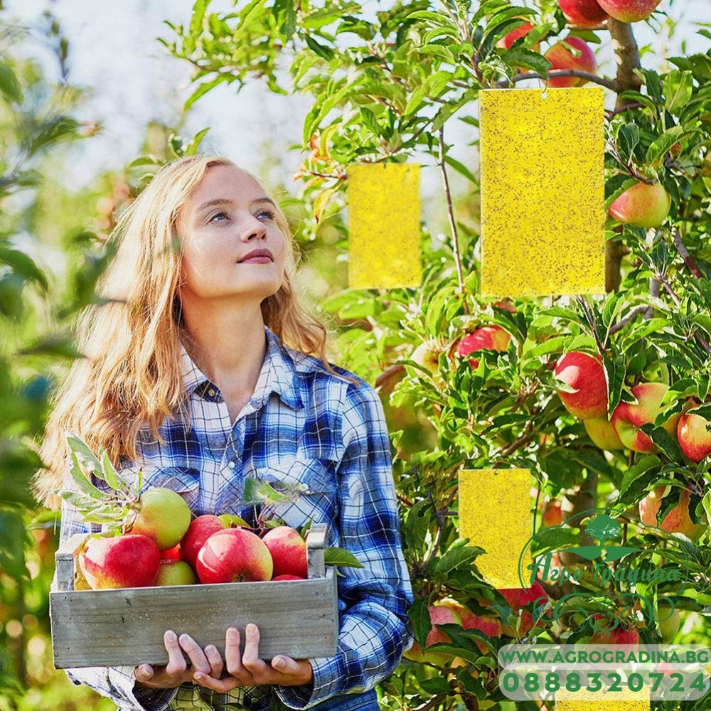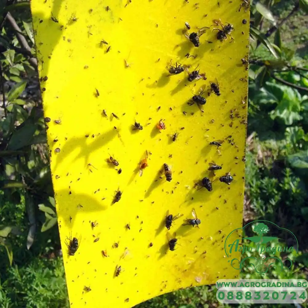 Онлайн магазин agrogradina.bg представя капан (лепилна дъска) с кука за защита на растенията , което привлича и улавя летящи насекоми (листни въшки, белокрилки, трипси и мушици).