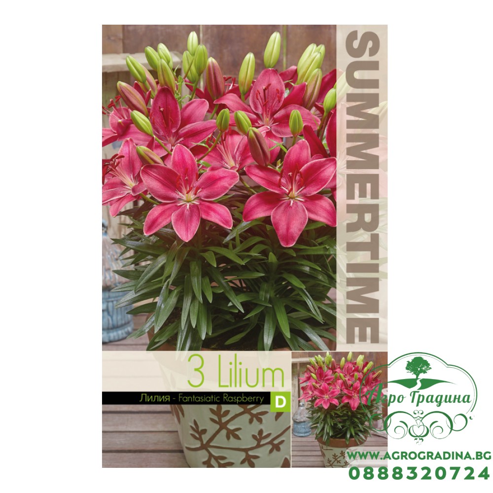 Онлайн магазин agrogradina.bg предлага луковици за Лилиум Фантастична малина / Lilium Fantastic Raspberry - сорт лилиум с впечатляващи цветове, които се отличават с наситен малиново-червен център и по-светли кремаво-бели краища на венчелистчетата. Този сорт съчетава ярки и контрастни цветове, които създават драматичен визуален ефект в градината или аранжировката.