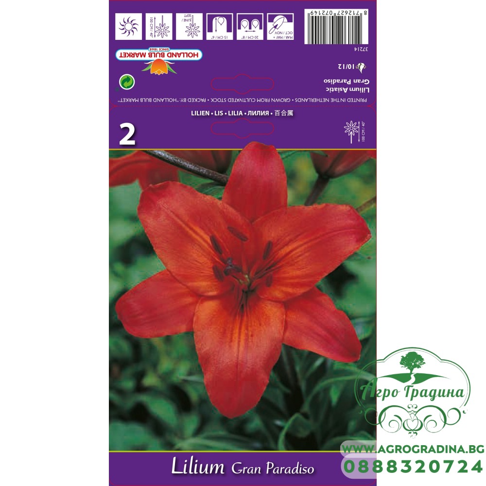 Онлайн магазин agrogradina.bg предлага 2 броя луковици за Лилиум "Гран Парадизо" / Lilium Gran Paradiso.